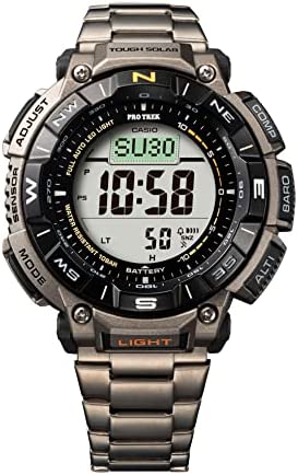 | nameOriginal | Casio Pro Trek Bio Mass Tough Solar Triple Sensor w/Thermometer Altimeter Barometer Compass World Time Men's Titanium Band Watch PRG340T-7, Silver-Tone |