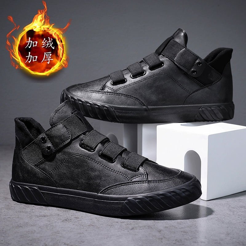 | nameOriginal | Men's trendy shoes 2023 autumn new high-top leather shoes black casual Martin boots breathable slip-on lazy boots |