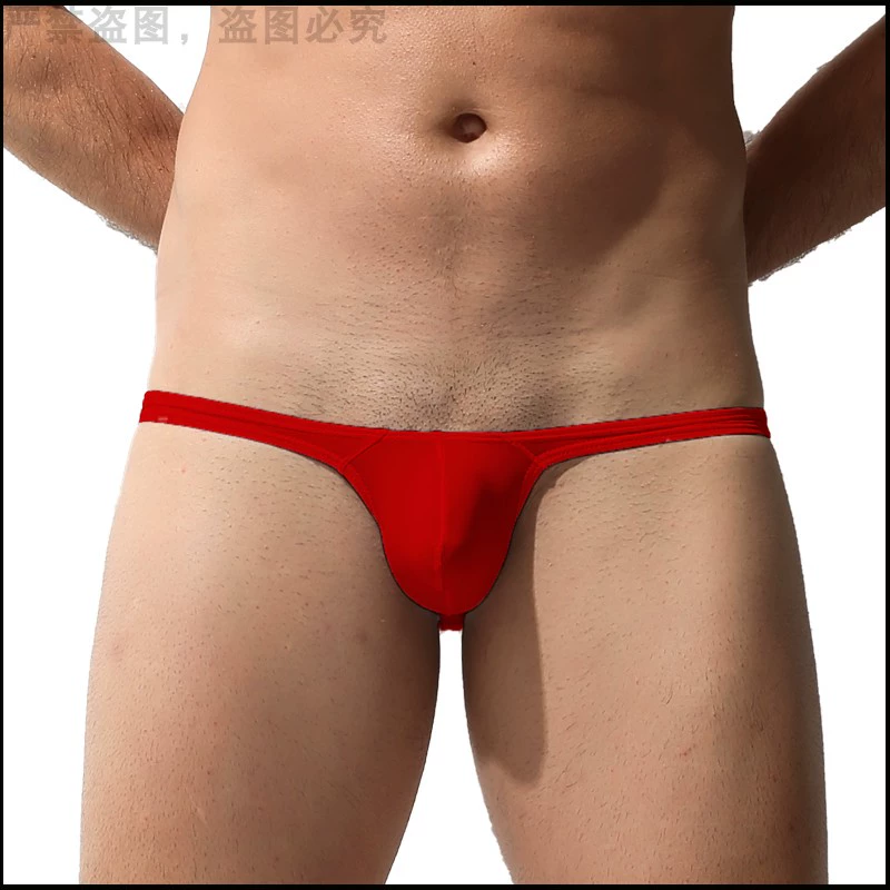 Men's ultra-low-waist ice silk briefs, breathable, sexy, tight-fitting, elastic men's pants with bulging bags, silky small pants