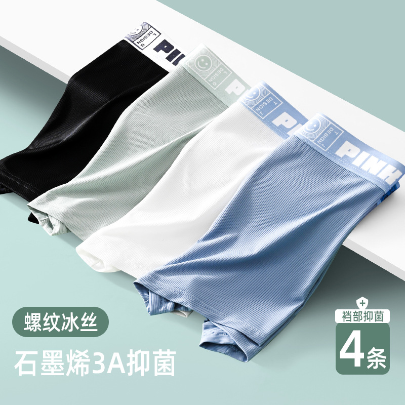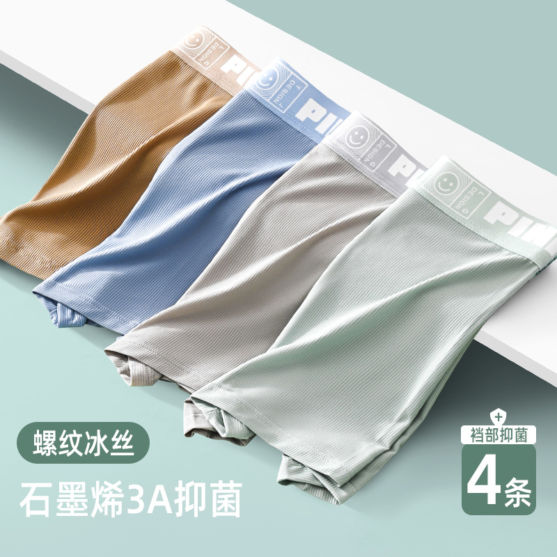Men's Underwear Boys Ice Silk Boxer Summer Boxer Teenagers Seamless Trousers Men's Threaded Solid Color Boxer Shorts