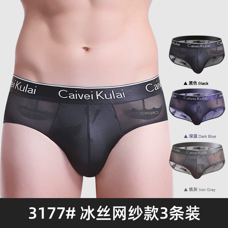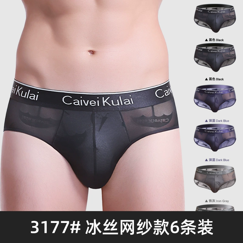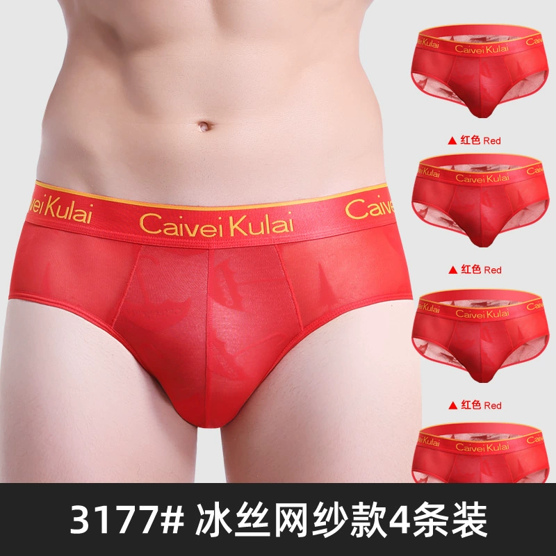| nameOriginal | Men's underwear briefs ice silk triangle shorts mesh transparent breathable summer thin sexy red bottoms νckν |