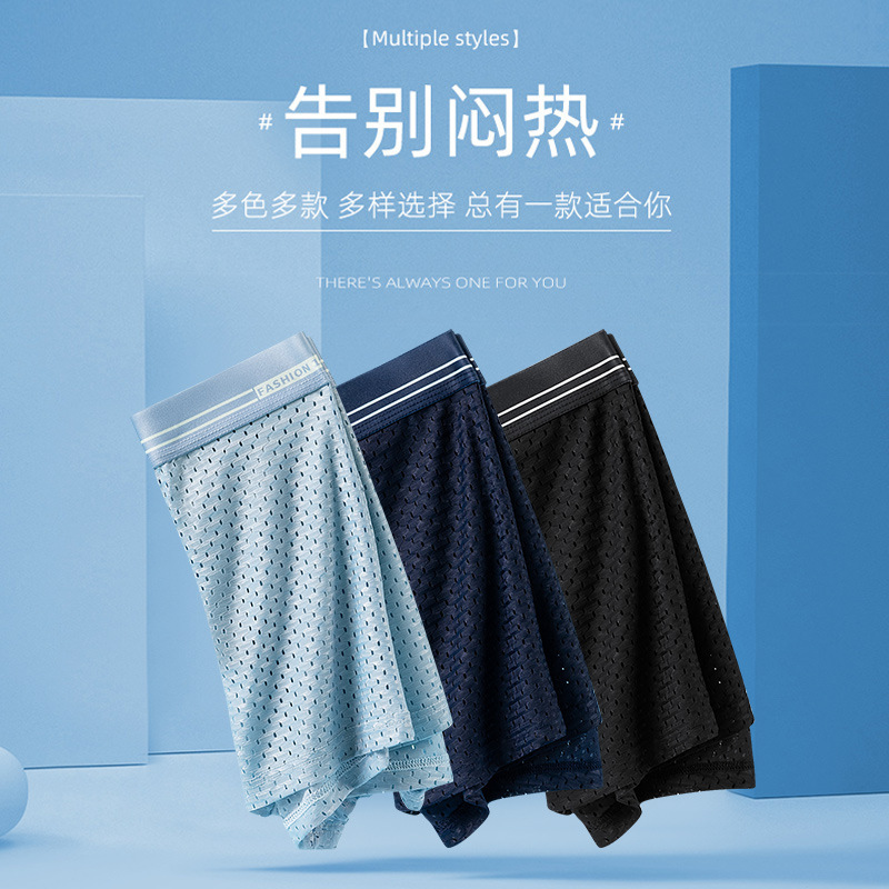 Men’s underwear men’s ice silk mesh plus size graphene antibacterial breathable boxers thin youth boxer shorts head