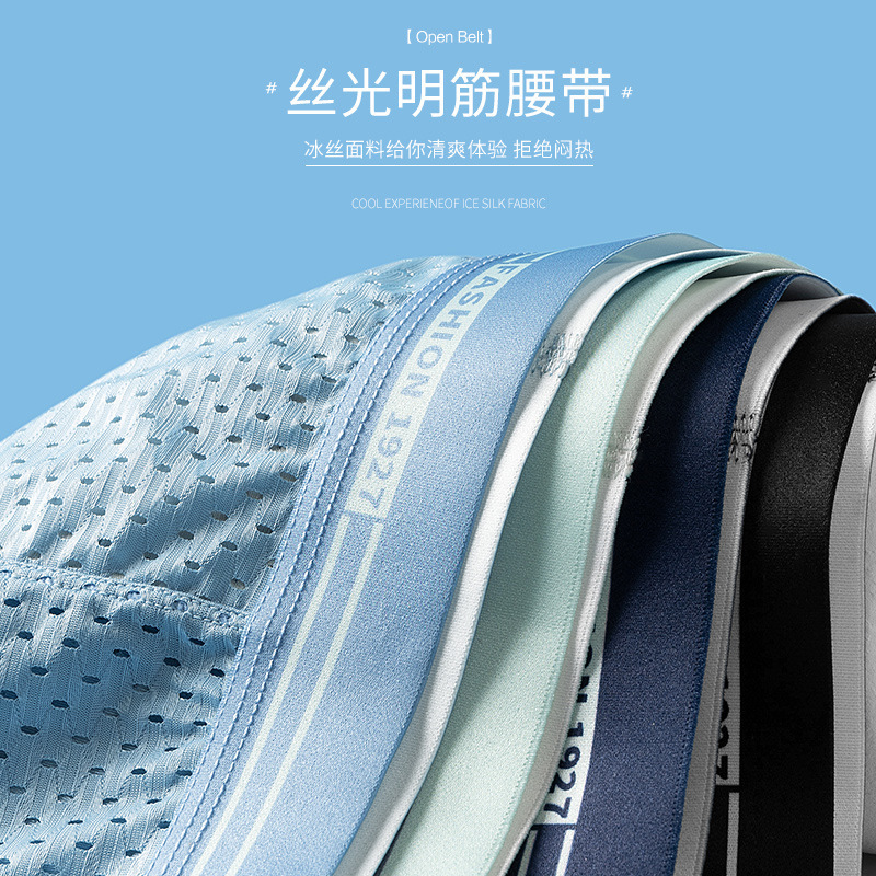Men's underwear men's ice silk mesh plus size graphene antibacterial breathable boxers thin youth boxer shorts head