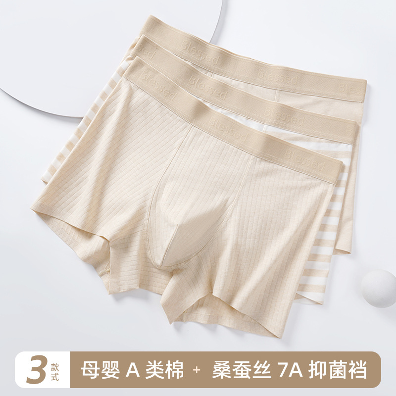 | nameOriginal | Men's Underwear Pure Cotton Class A Cotton 7A Bacteriostatic Mulberry Silk Crotch Maternal and Infant Class A Color Cotton Underwear Men's Pure Cotton Boxers |