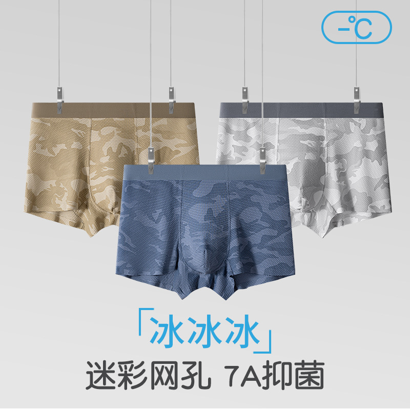 | nameOriginal | Men's Underwear Summer Camouflage Ice Silk Underwear Men's Flat Angle Non-marking Breathable Anti-bacterial Crotch Middle Waist Four Corner Underwear for Men |