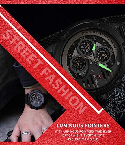 The NAVIFORCE Sport Military Watch for Men is the perfect combination of style and functionality. This watch is designed to withstand the toughest of conditions, making it the ideal choice for outdoor enthusiasts and sports enthusiasts alike. The watch features a black-yellow-black color scheme that is both bold and eye-catching. The analog quartz movement ensures accurate timekeeping, while the leather band provides a comfortable fit. The watch is also waterproof, making it suitable for use in all weather conditions. The date calendar feature allows you to keep track of important dates, while the clock function ensures that you are always on time. Whether you’re hitting the gym or exploring the great outdoors, the NAVIFORCE Sport Military Watch for Men is the perfect accessory to keep you on track.