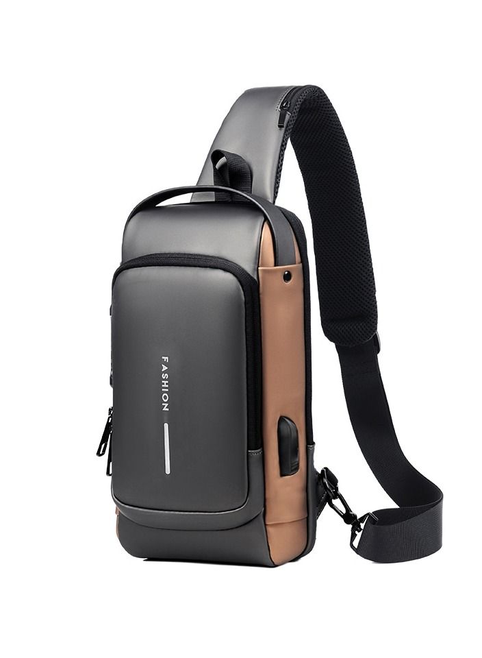 This chest bag is not only functional but also stylish, with its sleek patent leather design that is sure to turn heads. The bag features multiple compartments and pockets, allowing you to easily organize your essentials and keep them within reach. The USB charging port is an added convenience, allowing you to charge your devices on the go.