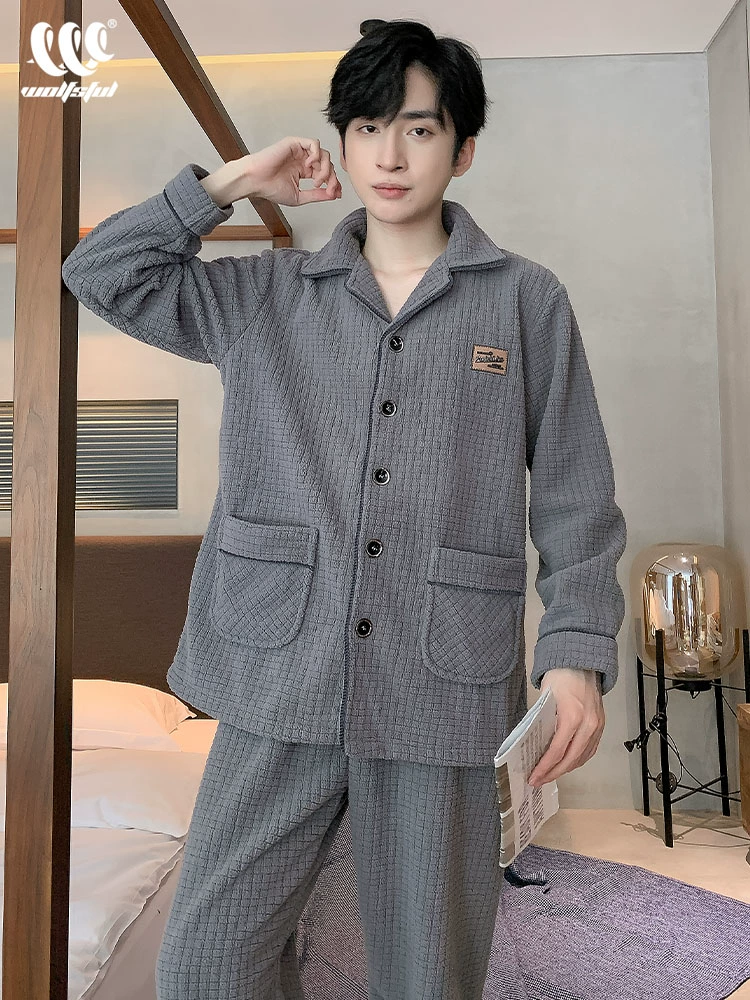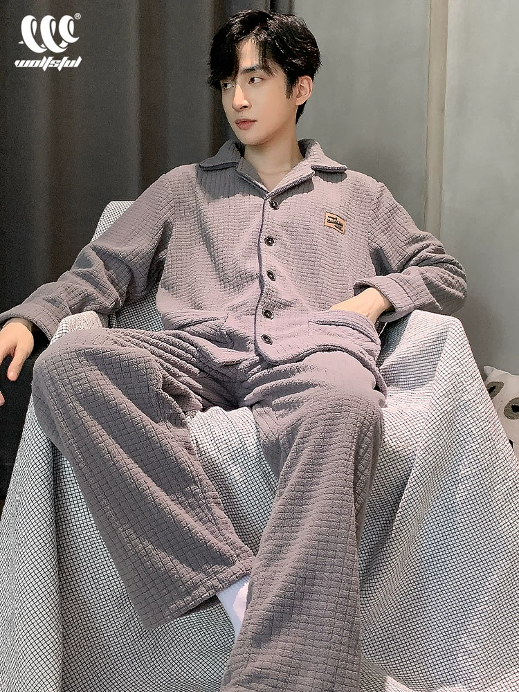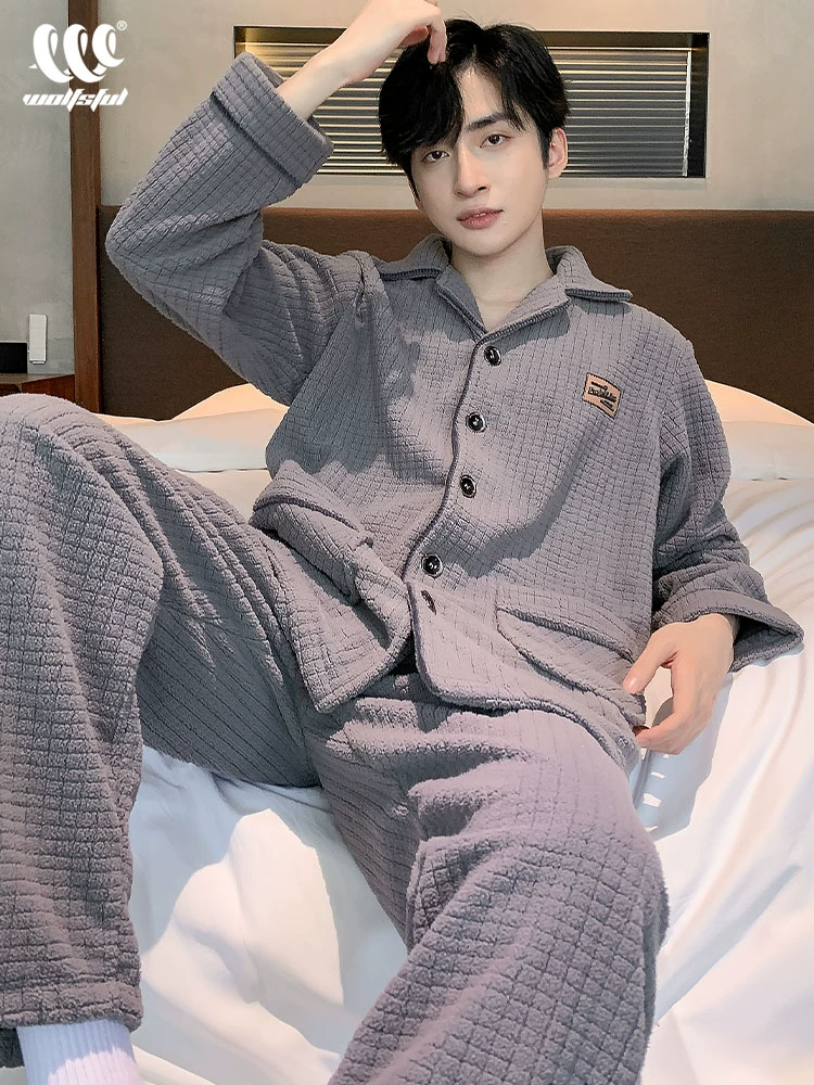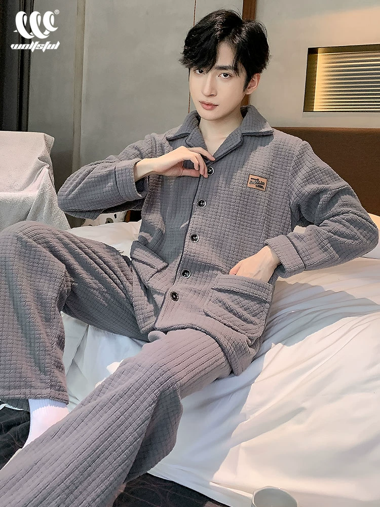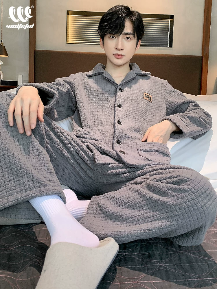 Men’s winter coral velvet thickened plus velvet autumn and winter large size flannel men’s wearable home wear set