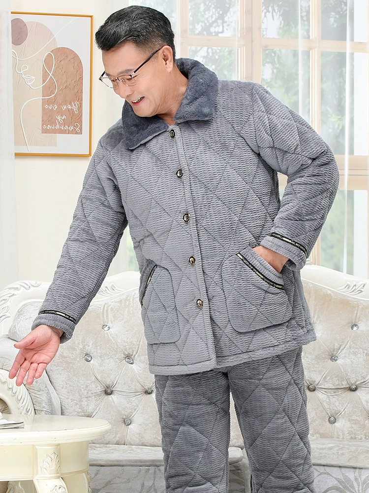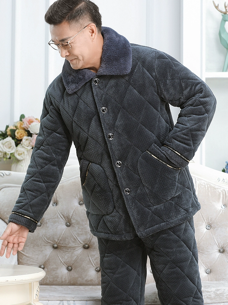 | nameOriginal | Men's winter pajamas plus velvet and thickened three-layer quilted coral velvet warm middle-aged and elderly father's home clothes set |