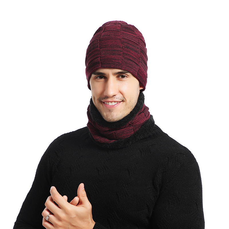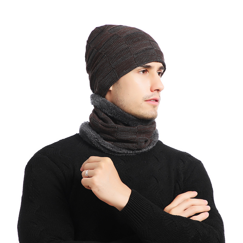 Men's Winter Warm Neck Knitted Hat European and American Neck Set fleece-lined Hat Winter Cold-proof suit Thickened Neck