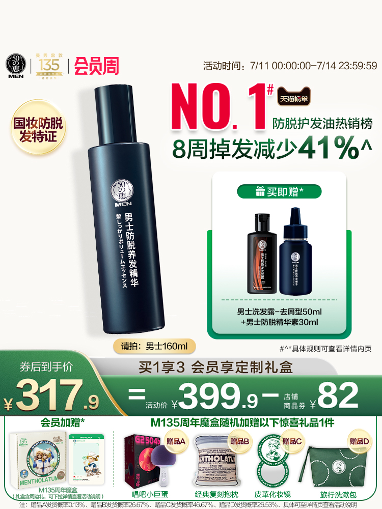 | nameOriginal | [Mentholatum] 50 benefits men's anti-hair loss hair essence, rinse-free, nourishing and firming hair |