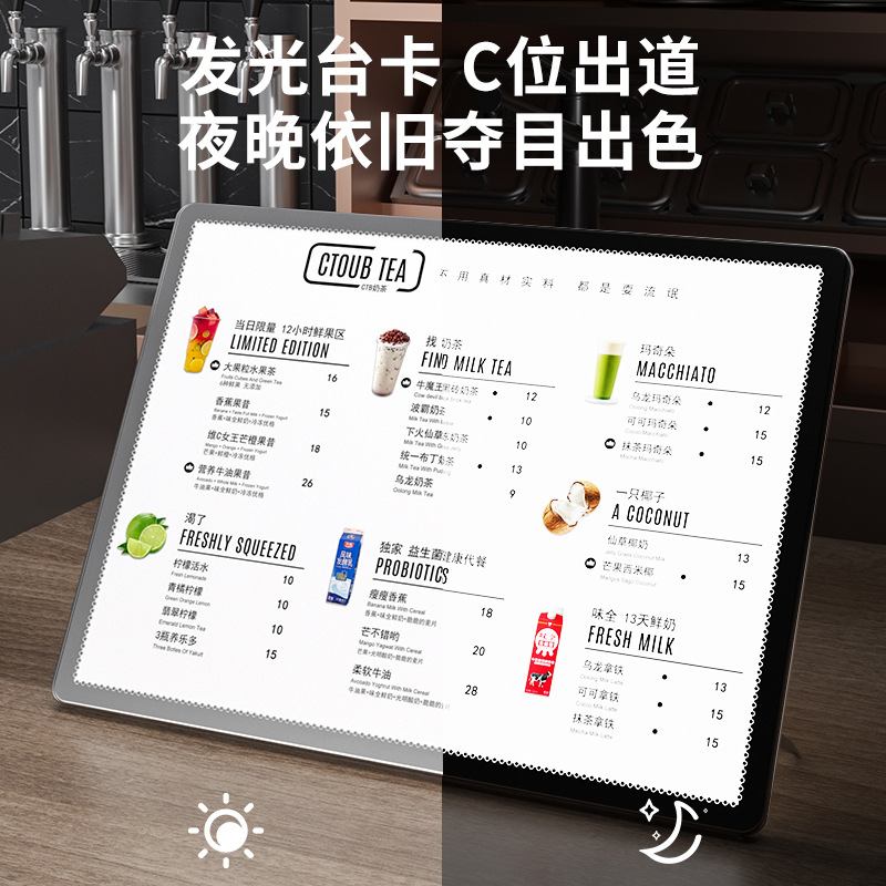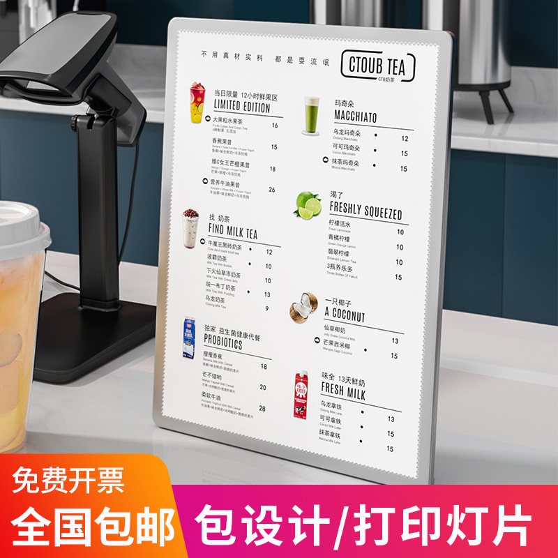 | nameOriginal | Menu display card milk tea shop price list luminous table card snack hamburger coffee ordering menu price list set |
