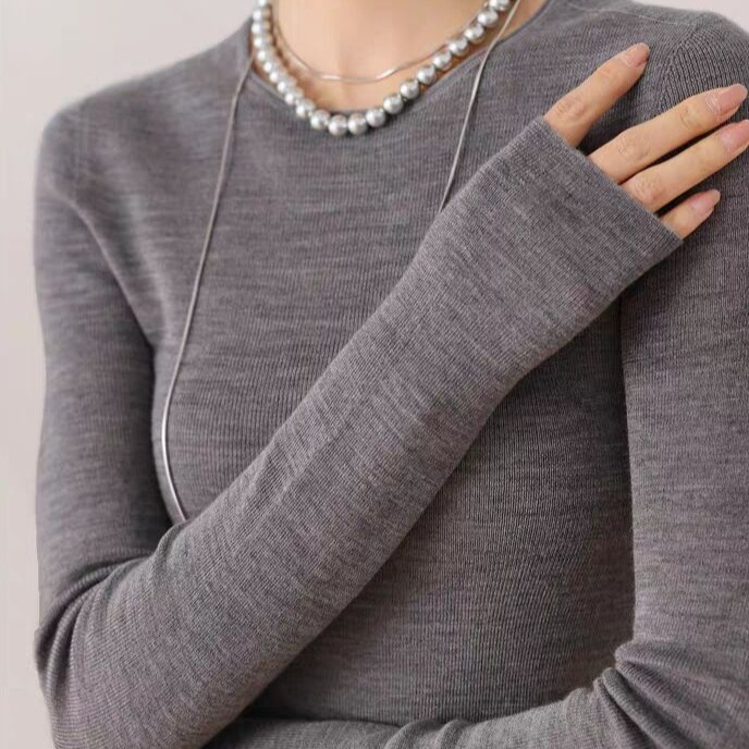 Merino Worsted 100 Wool Slim-Fit Base Knitted Women’s Thin Thundershirt with Seamless One-piece Yangtze Yarn 18-stitch