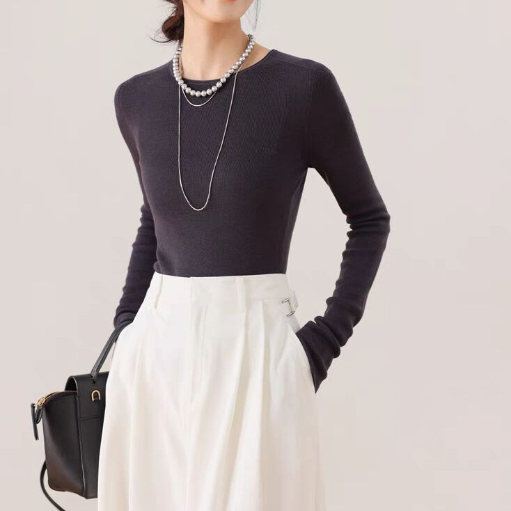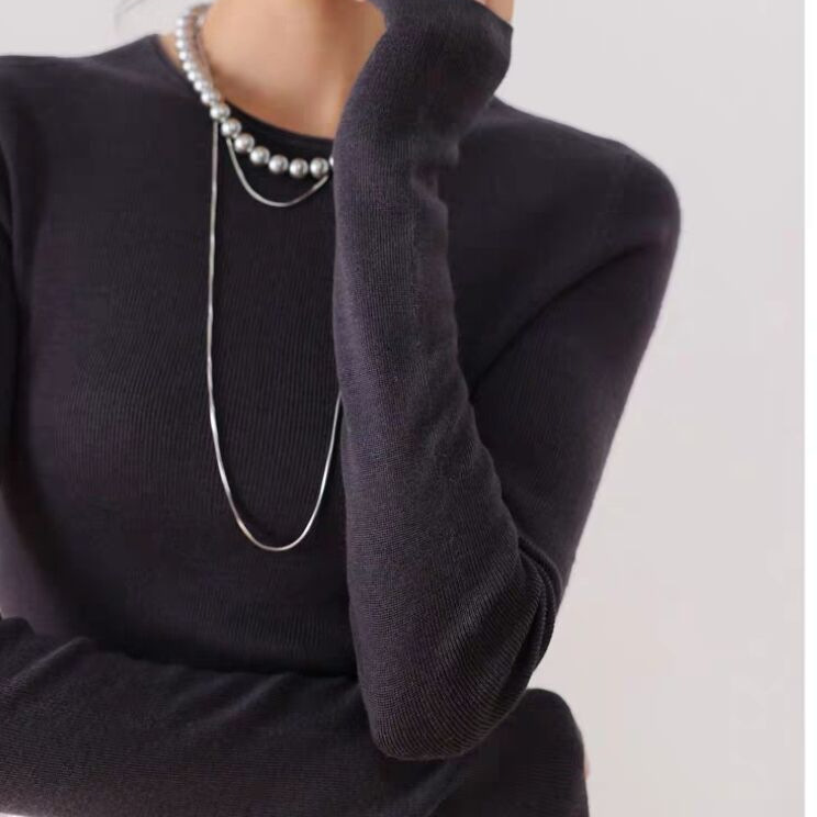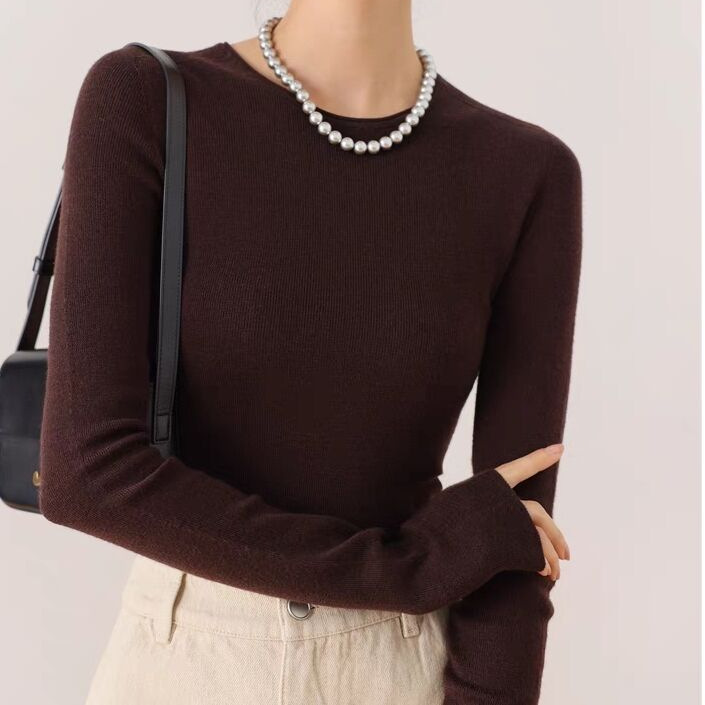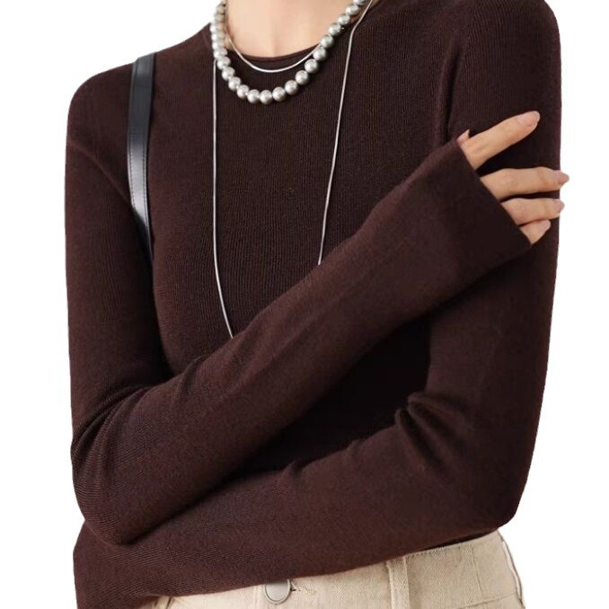 Merino Worsted 100 Wool Slim-Fit Base Knitted Women's Thin Thundershirt with Seamless One-piece Yangtze Yarn 18-stitch