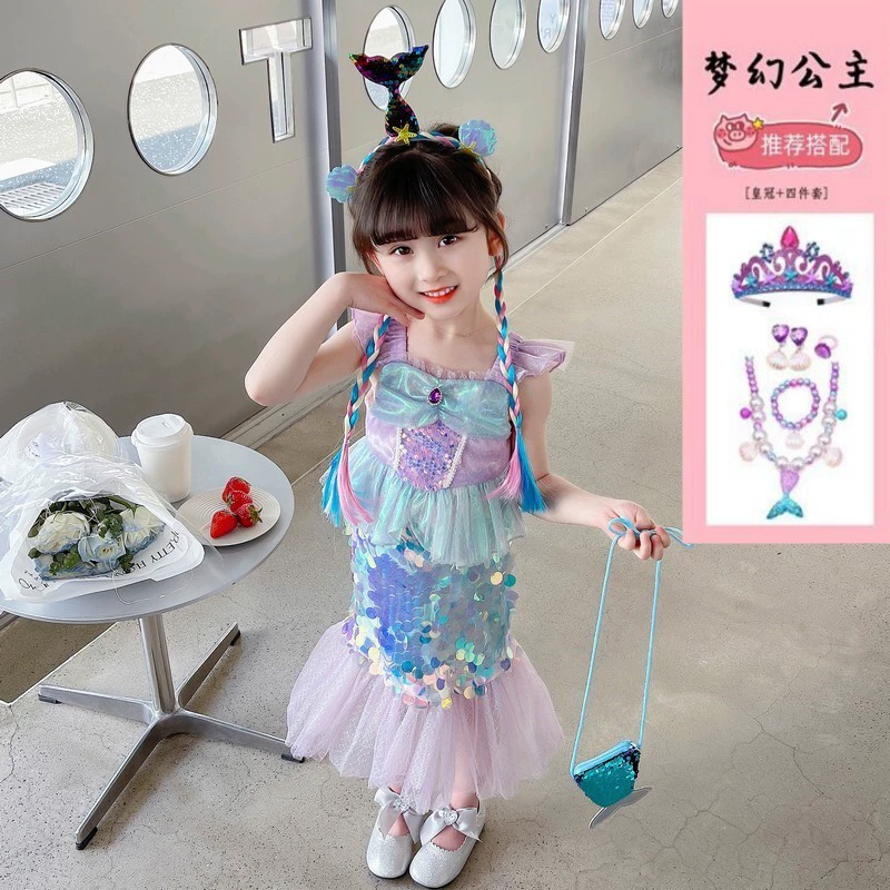 | nameOriginal | Mermaid girl princess dress fashionable birthday performance outfit |