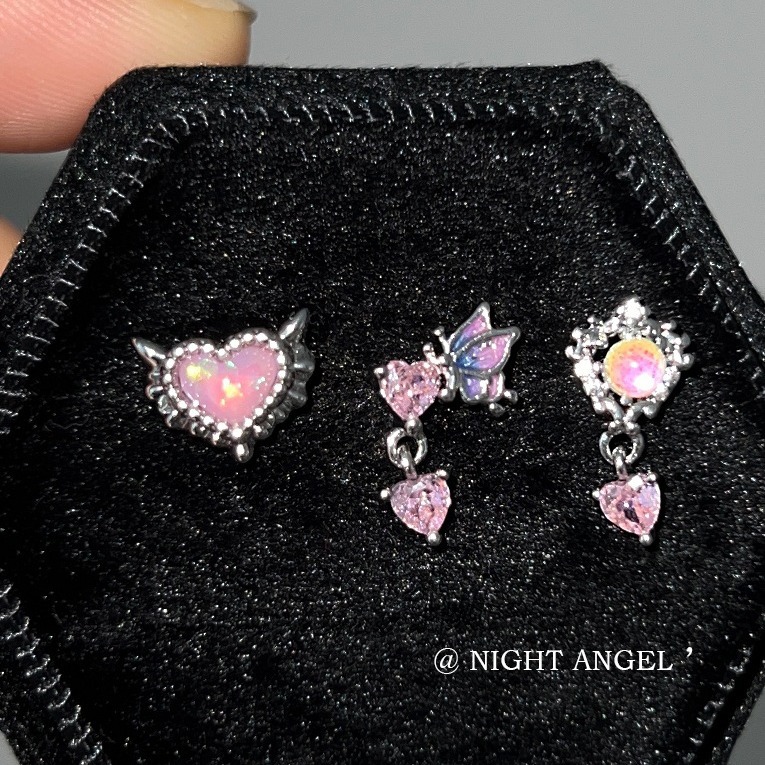 | nameOriginal | Mermaid Ji Opal Stone Ear Bone Nail Gradient Pink Butterfly Love Love Ear Nail Opal Titanium Steel Screw Earrings Earrings |