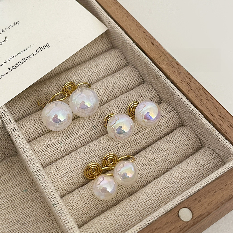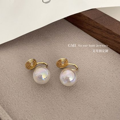 Mermaid Ji Pearl earless ear clip female French retro mosquito coil ear bone clip light luxury elegant high-grade earrings