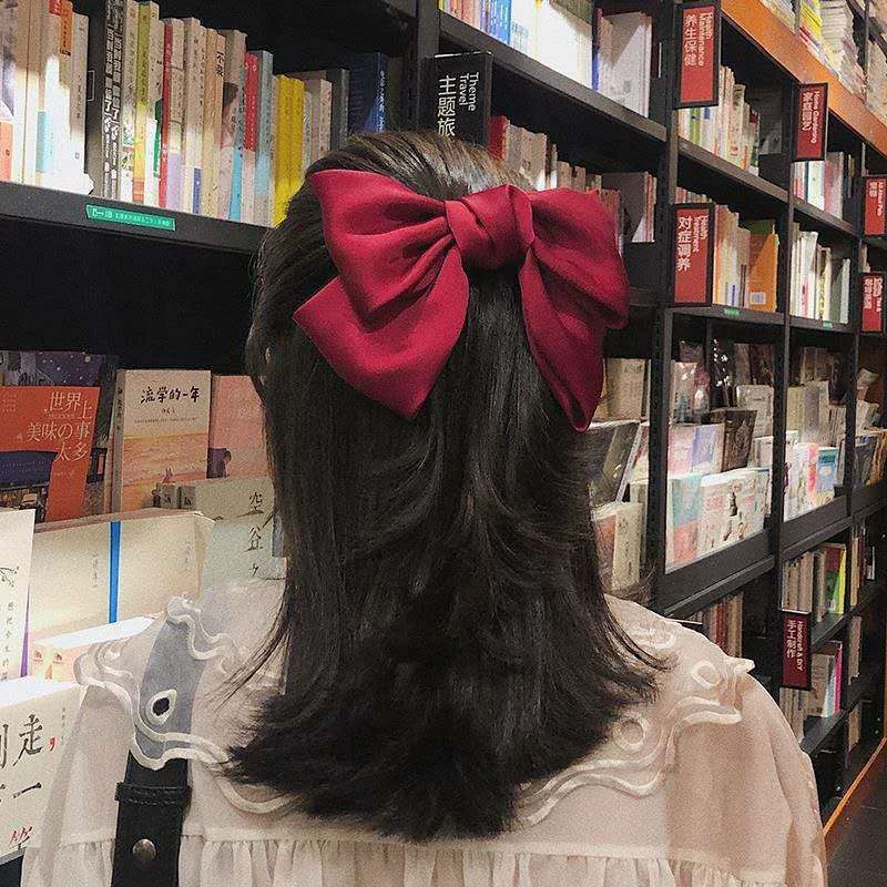 | nameOriginal | Mermaid Ji pearlescent satin bow hairpin back head clip top clip high-end bow tie hairpin spring clip |
