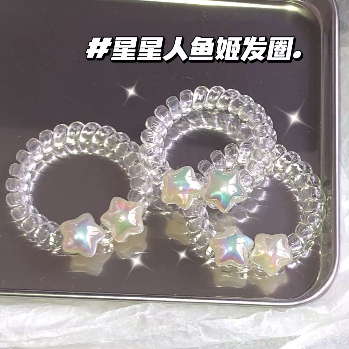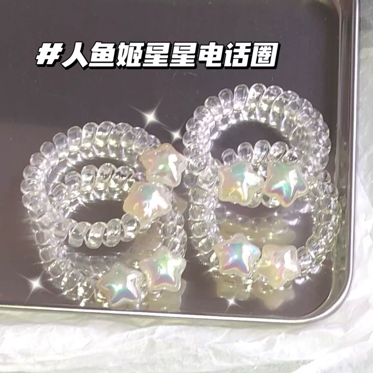 | nameOriginal | Mermaid Ji star phone ring ins cute girl heart sweet hair ring five-pointed star sparkling pearl white phone line |
