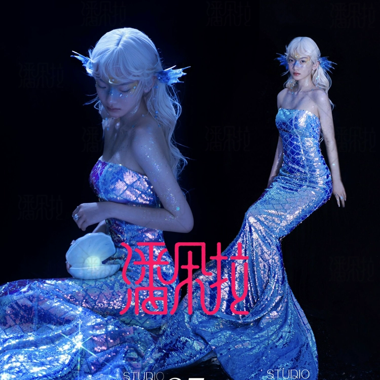 | nameOriginal | Mermaid photo-themed clothing, fashionable fantasy sequined fishtail dress, seaside travel photography, art photography, photography performance |