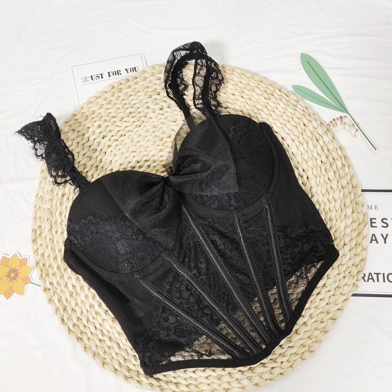 | nameOriginal | Mesh bow lace camisole women's spring and summer pure lusty sexy top slim fit short inner layering shirt |