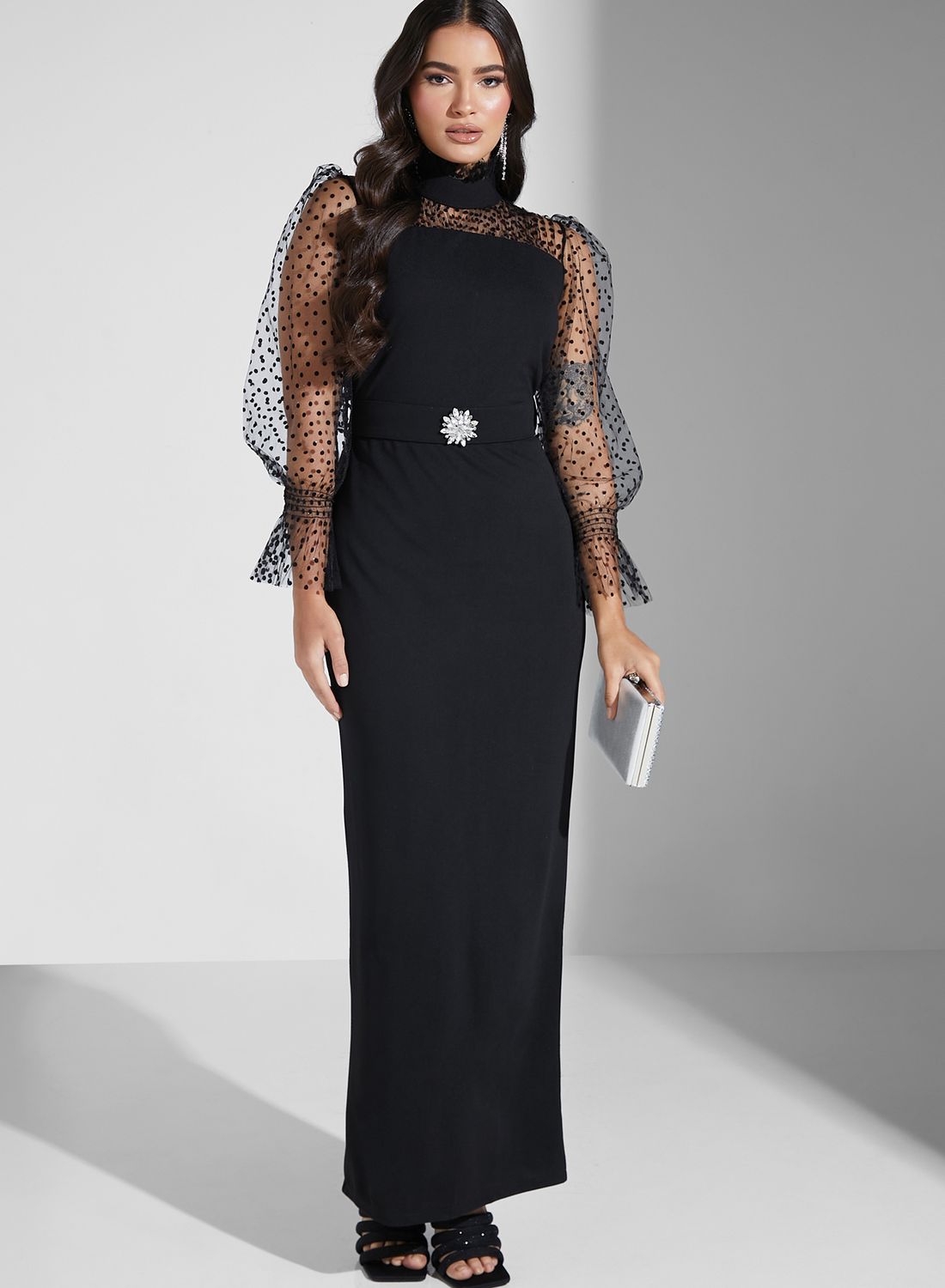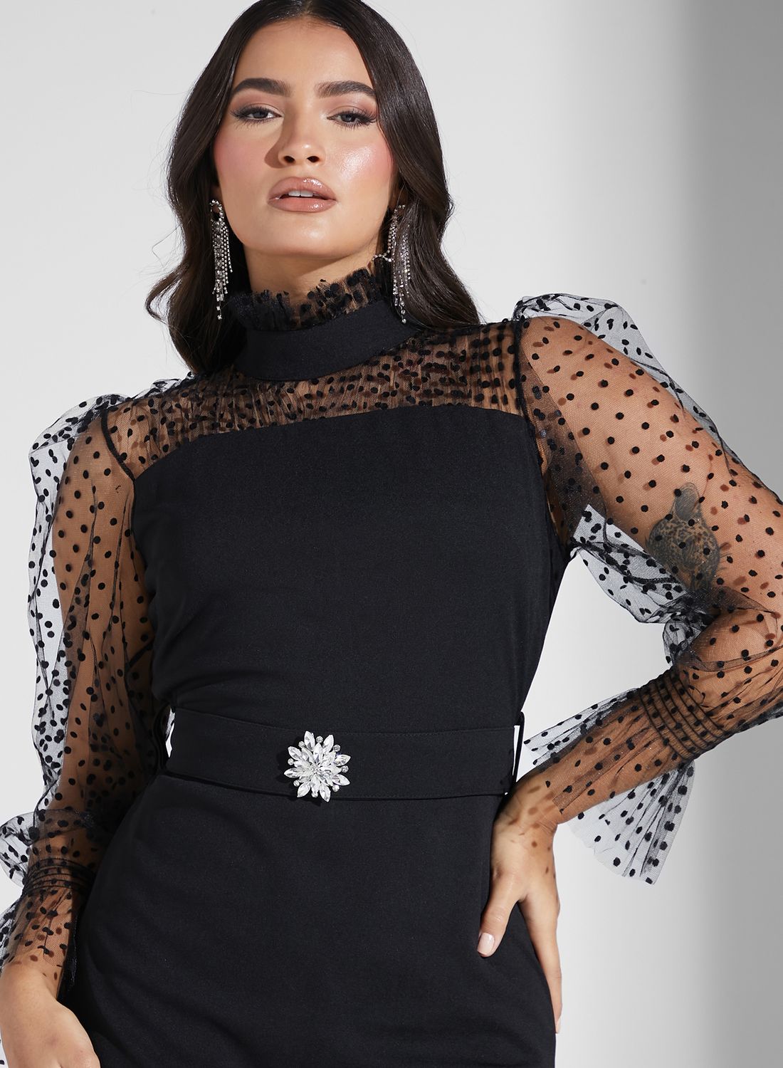 | nameOriginal | Embellished Belted Mesh Puff Sleeve Dress |