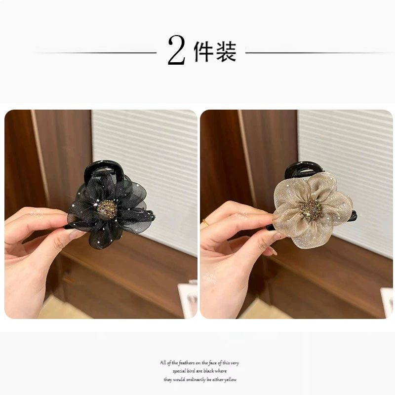 | nameOriginal | Mesh flower French hairpin with rhinestones on the back of the head |