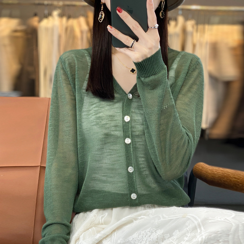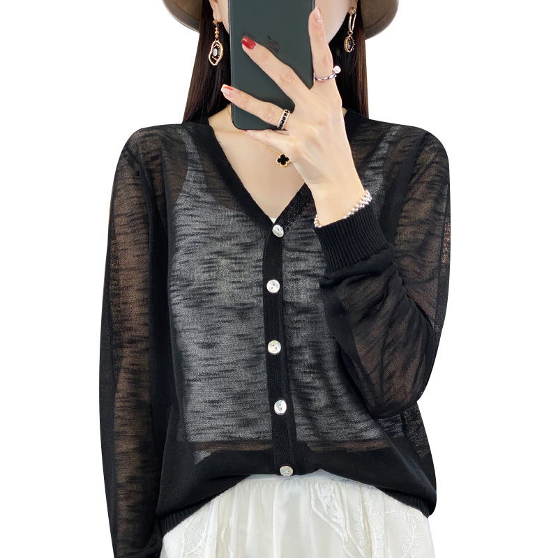 | nameOriginal | Mesh Ice Silk Micro-transparent Sunscreen Cardigan Women's Coat Pure Desire French Thin Long-sleeved Blouse V-neck Design Sunscreen |