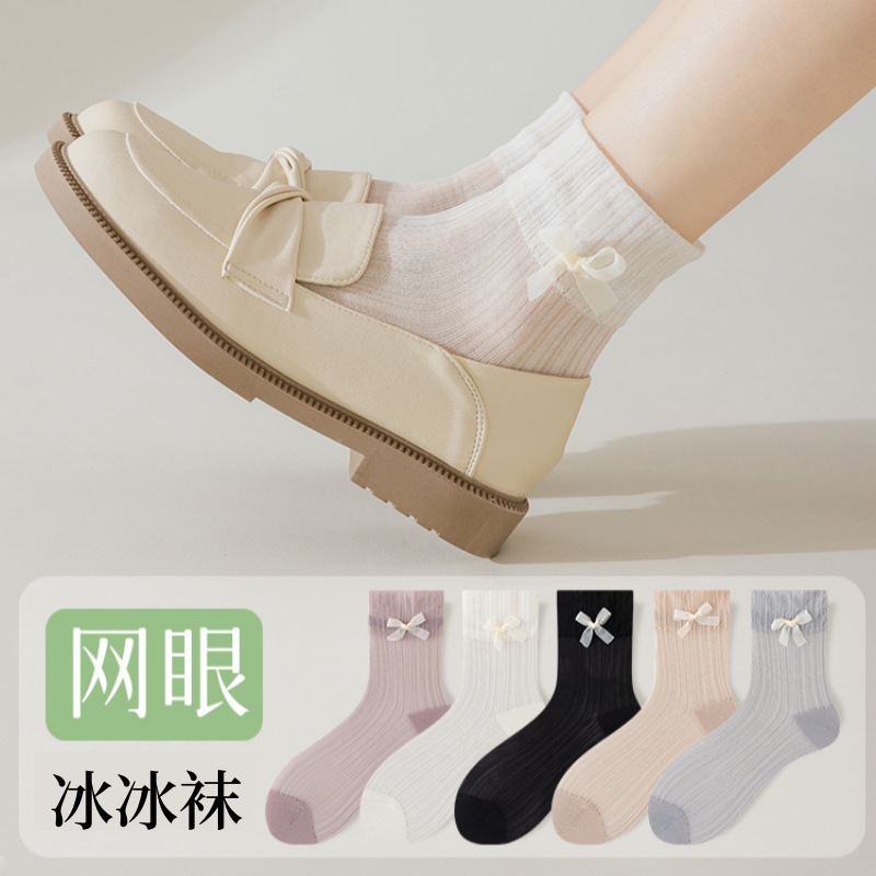 Mesh Ice Socks Sweat-absorbent Women's Summer Breathable Thin Foot-free Reinforced Socks Comfortable Casual All-match Stacked Socks