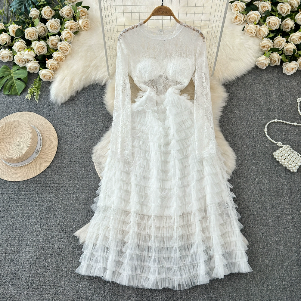 | nameOriginal | Mesh long sleeve round neck princess slimming cake dress lace |