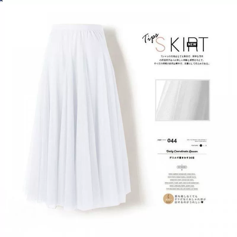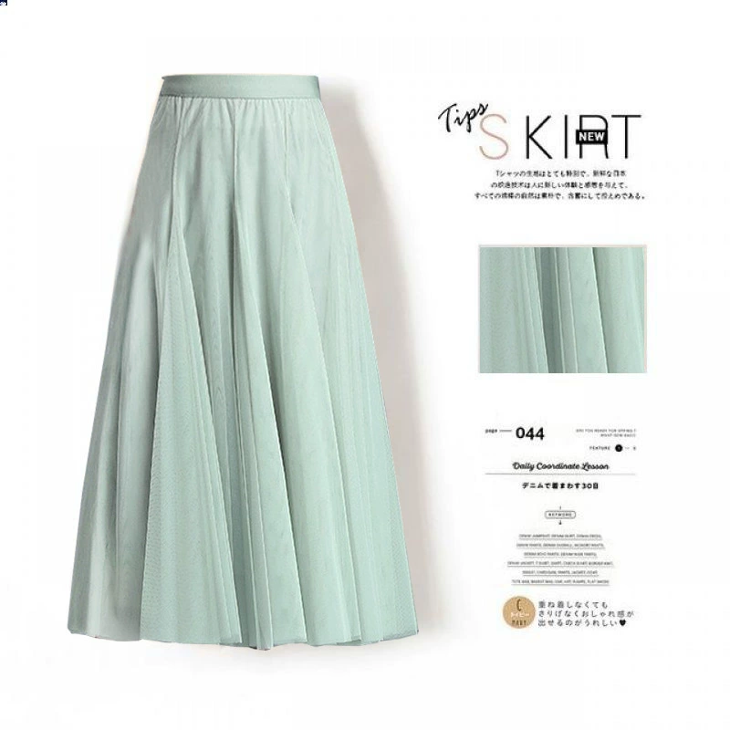 | nameOriginal | Mesh mid-length high-waisted A-line pleated skirt with wide hem |