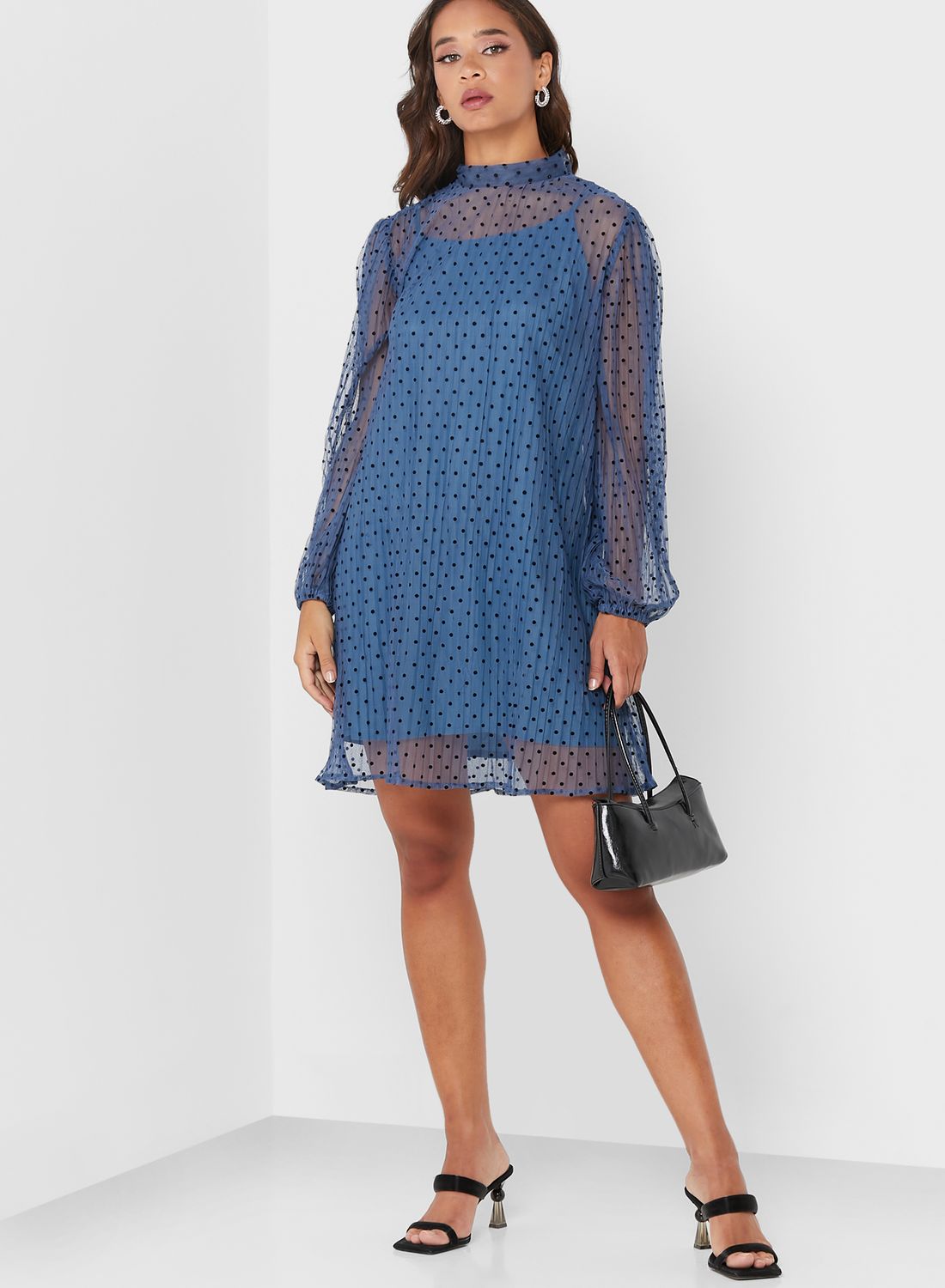 | nameOriginal | High Neck Mesh Pleated Dress |