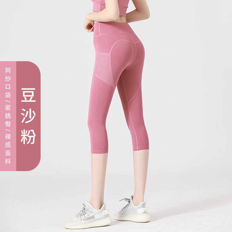 | nameOriginal | Mesh Pocket Yoga Pants Women's High Waist Hip Elastic Tight Peach Butt Running Sports Fitness Pants Nine-Point Trousers |