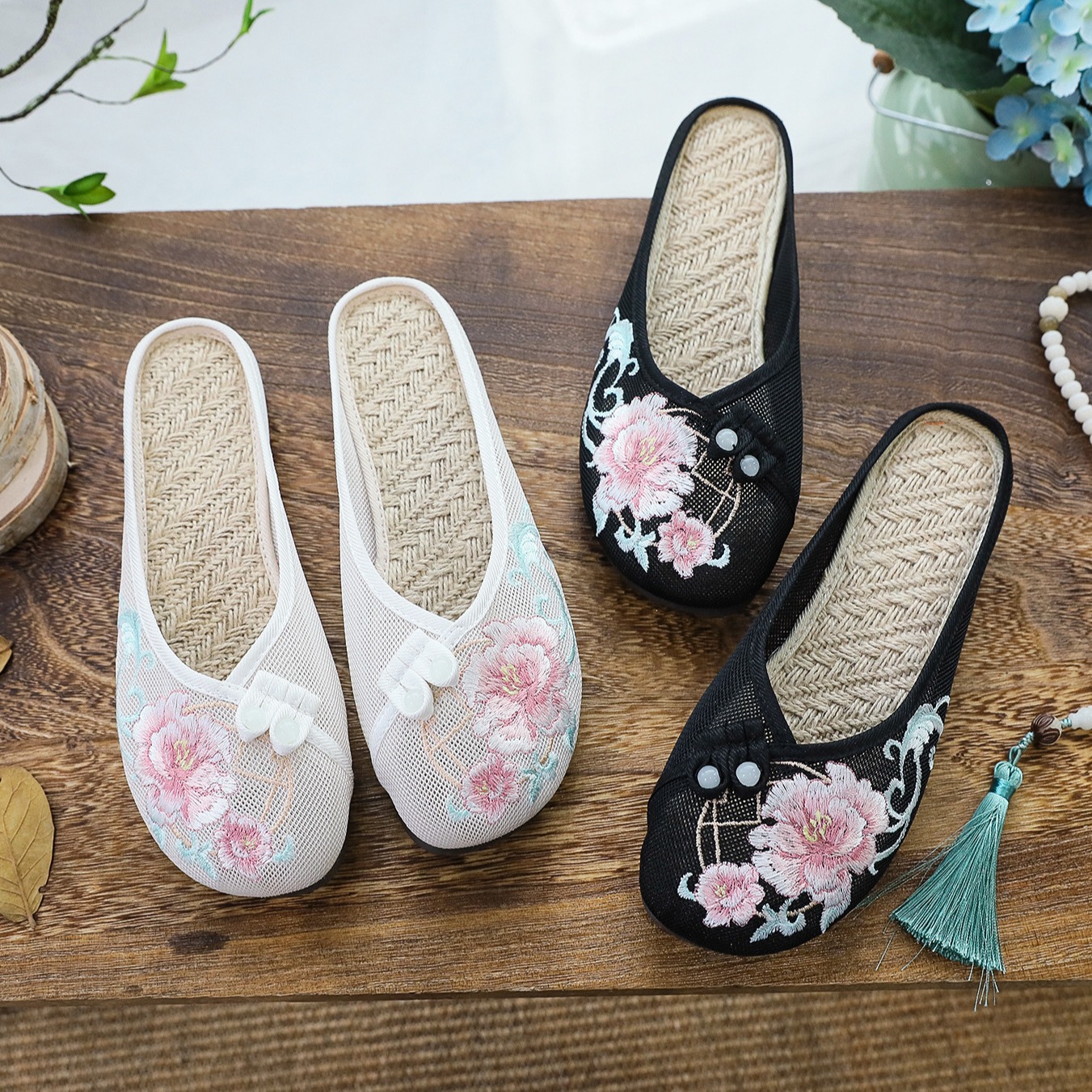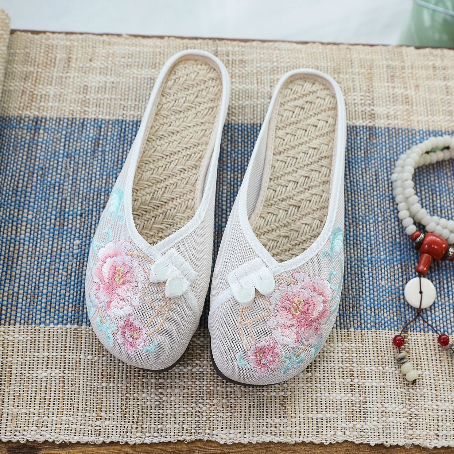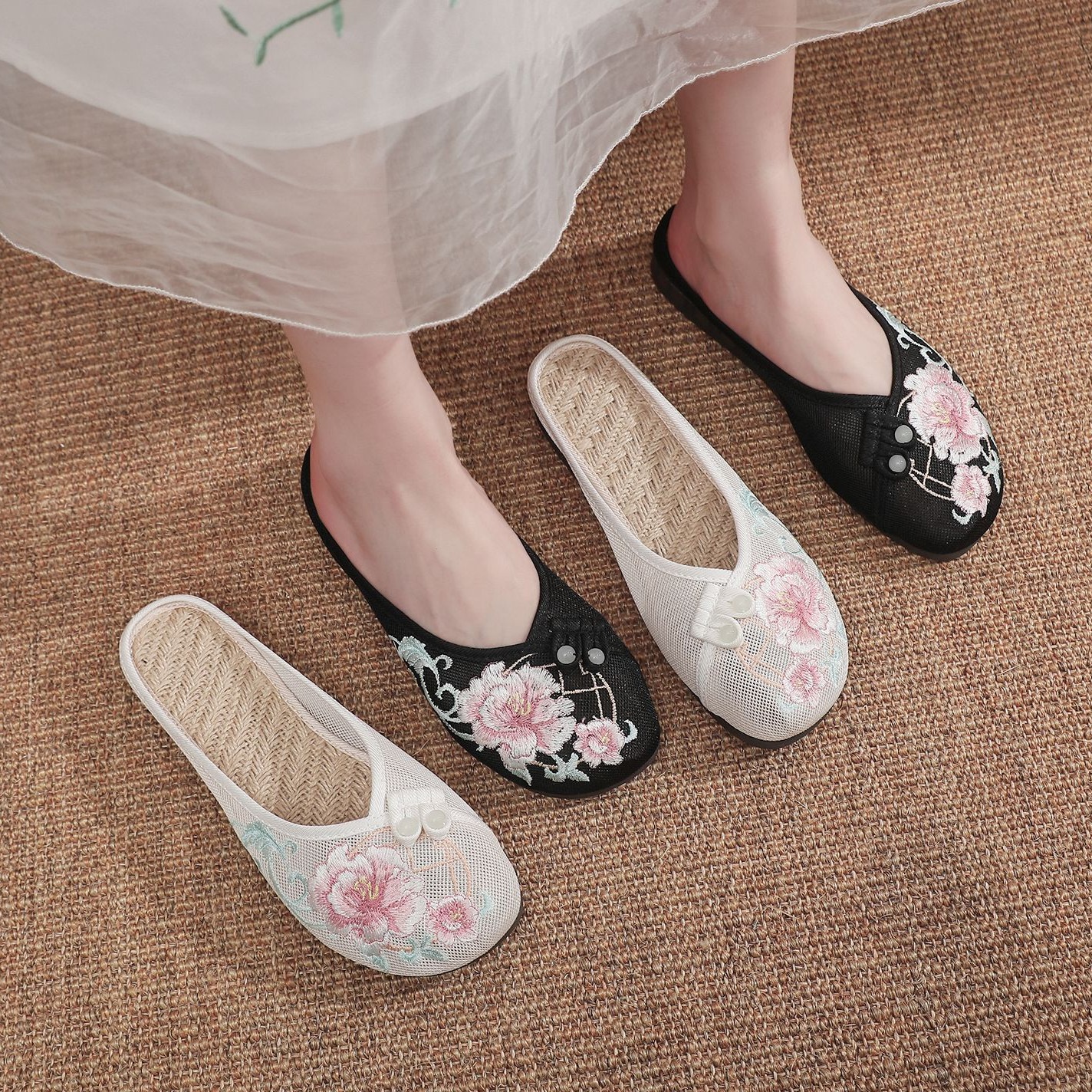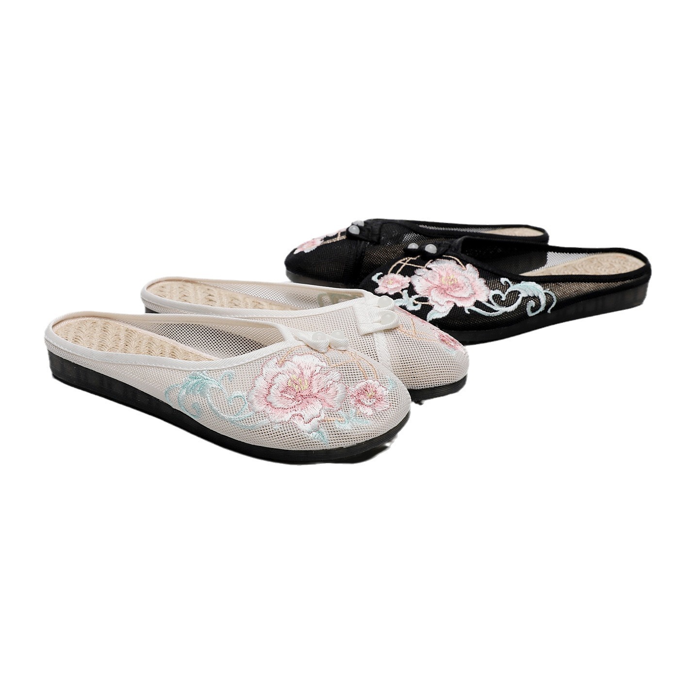 Mesh Shoes Full Mesh Linen Insole Embroidered Slippers Flat Slippers 2022 Women’s Shoes Sandals