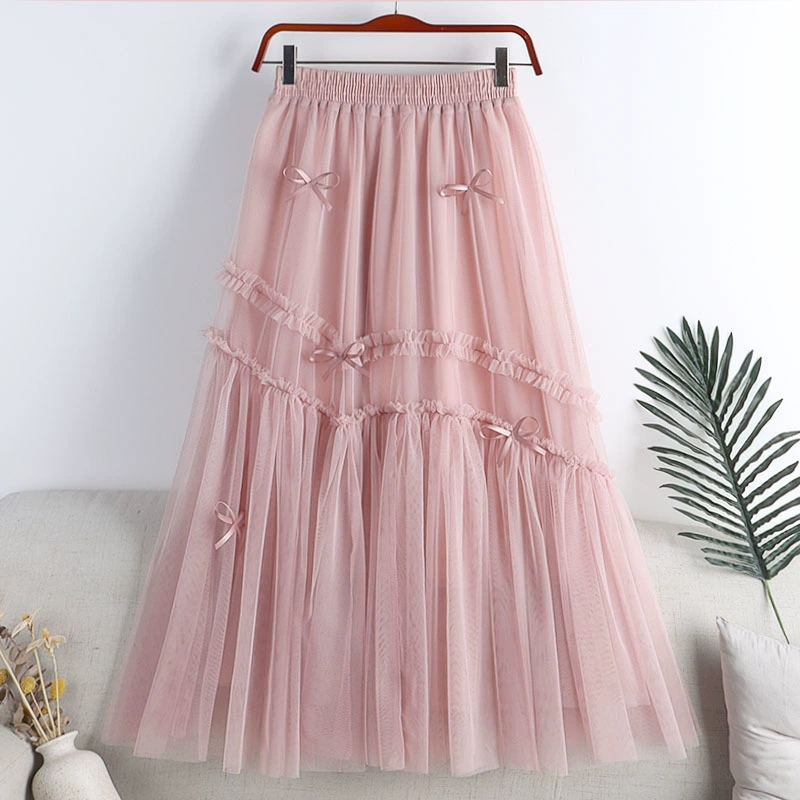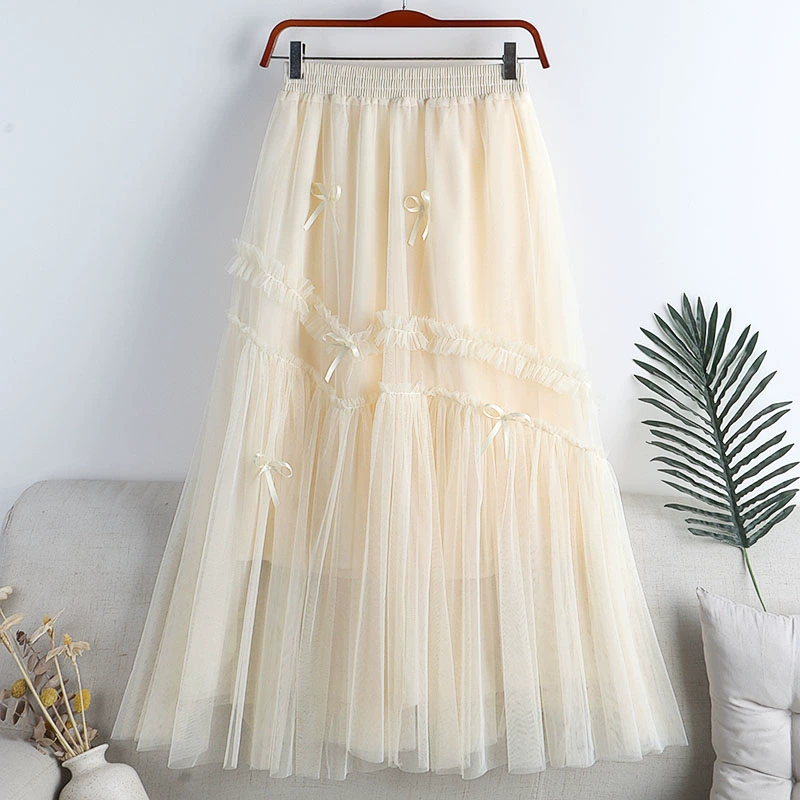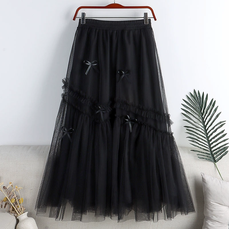 | nameOriginal | Mesh splicing mid-length large hem A-line skirt with bow |