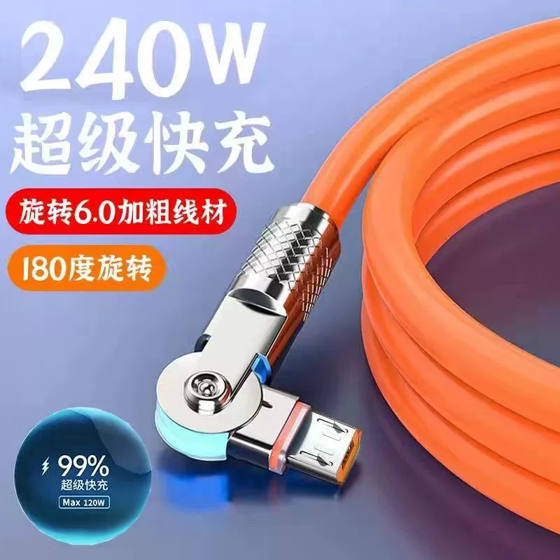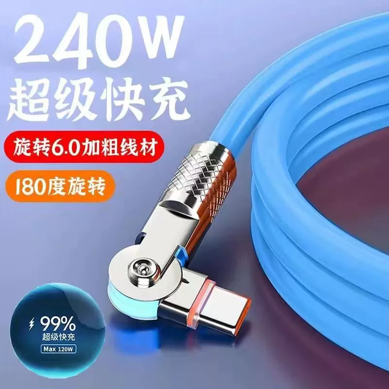 Metal 240W data cable elbow fast charging flash charging rotation suitable for Huawei OPPO Honor charging cable liquid bold