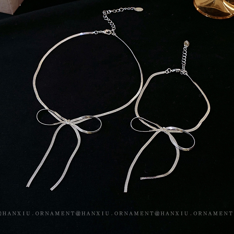 | nameOriginal | Metal bow necklace cold style personalized snake bone chain niche temperament design versatile new necklace necklace necklace |