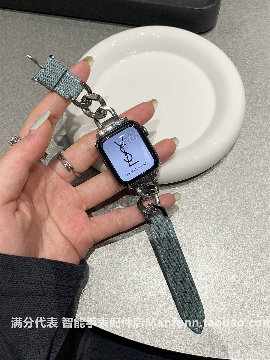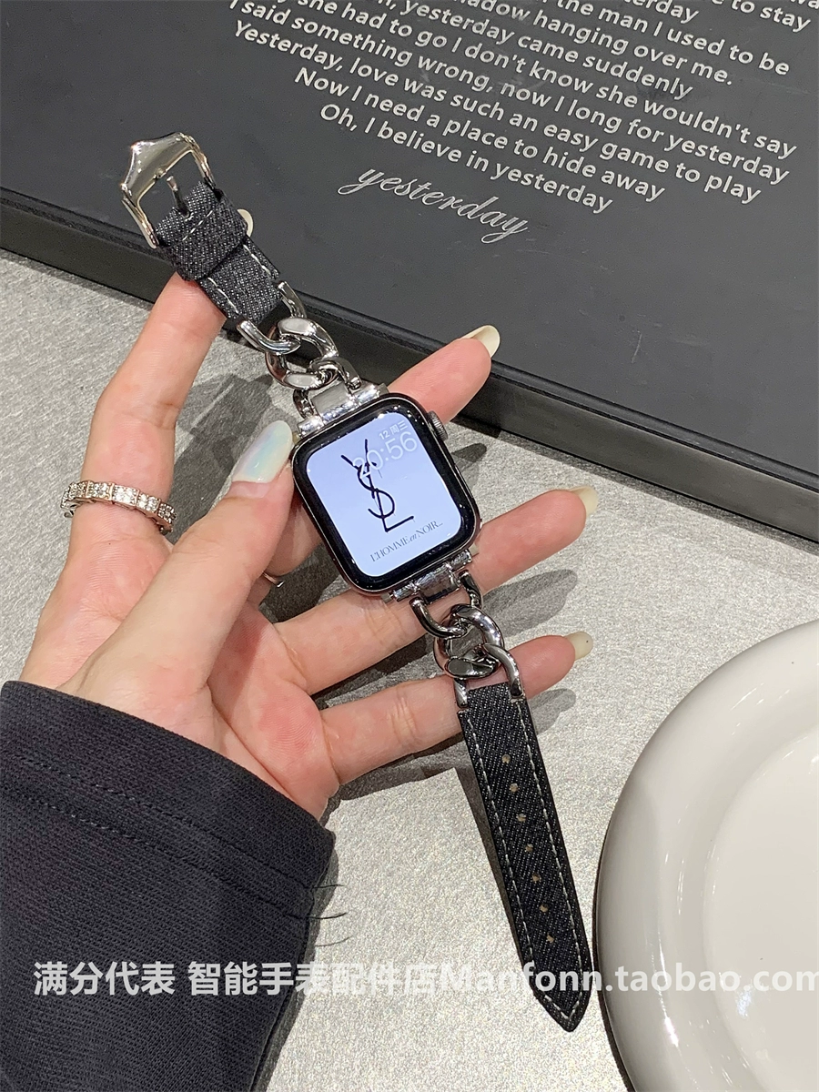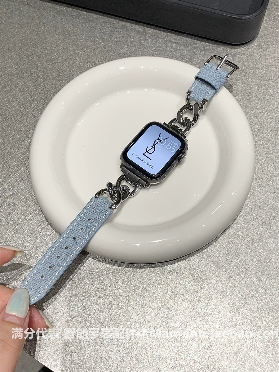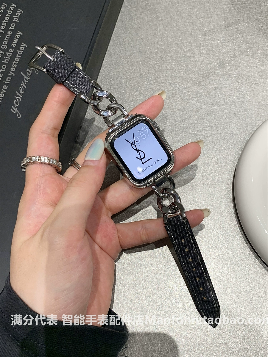 | nameOriginal | Metal chain spliced denim denim watch strap suitable for Apple Watch 345678 generation S9iwatch10 watch |