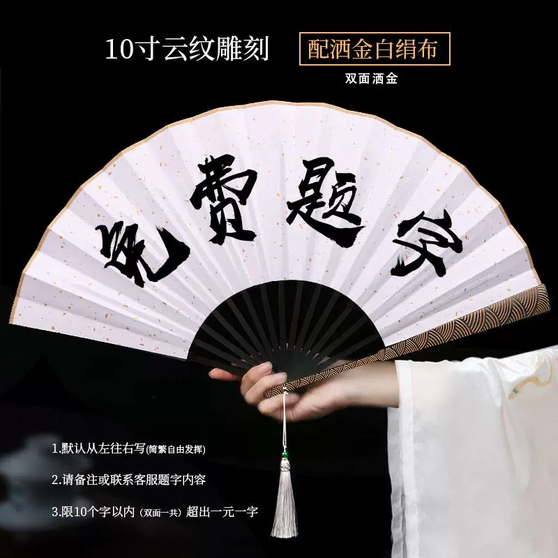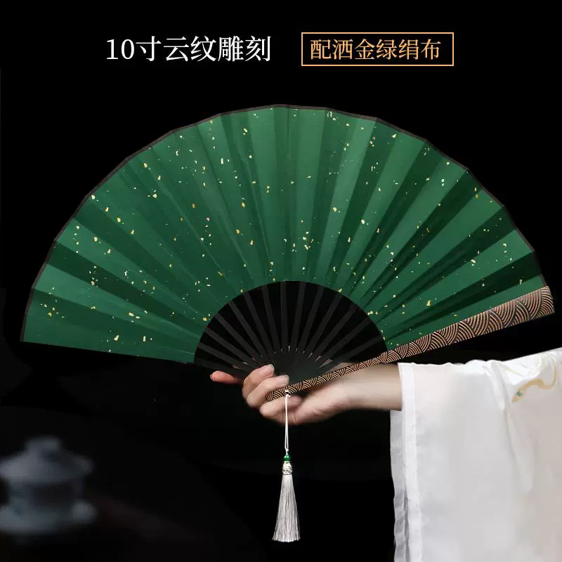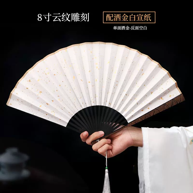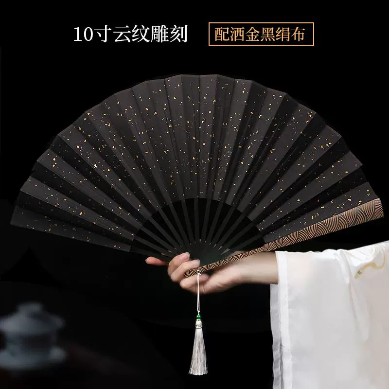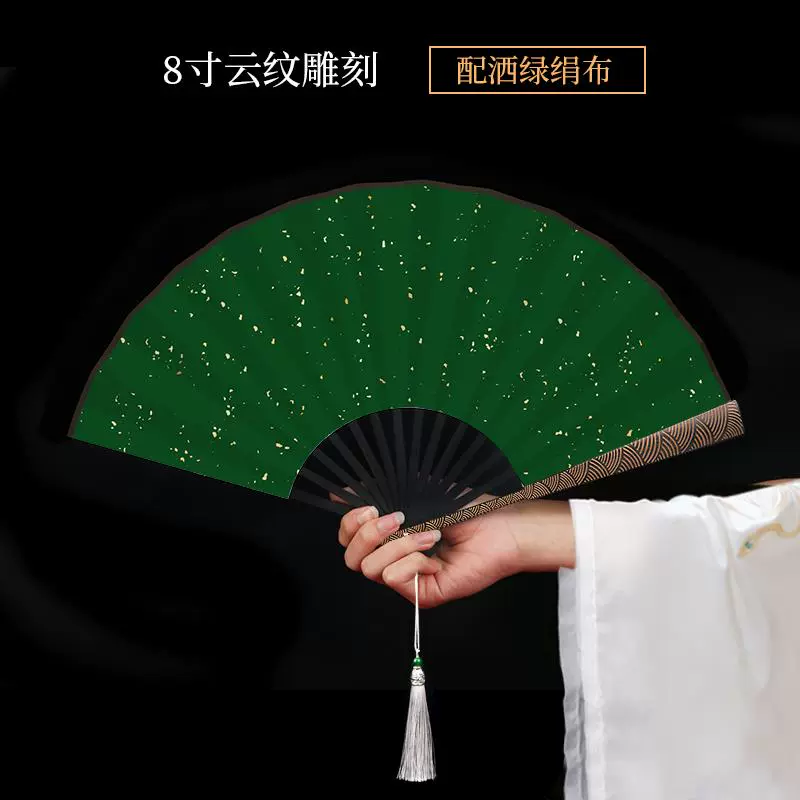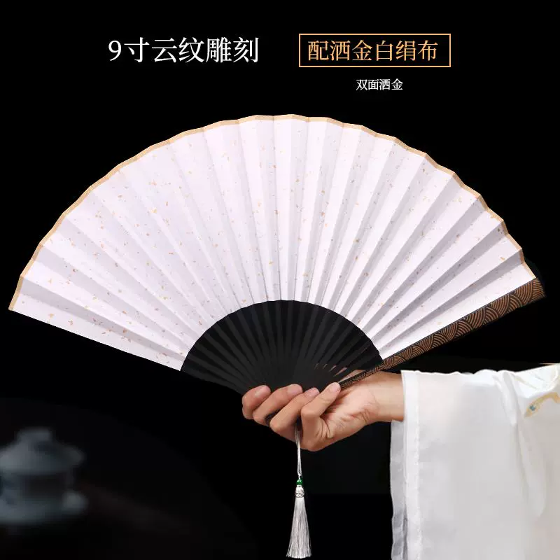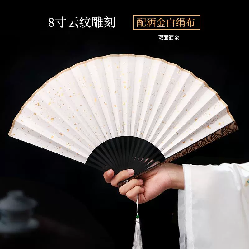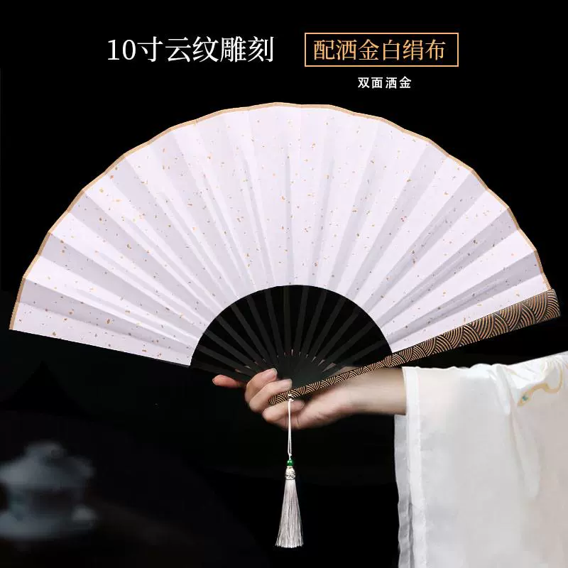 Metal frame iron fan for men and women, aluminum alloy folding fan, white with tassels, ancient style, portable for summer