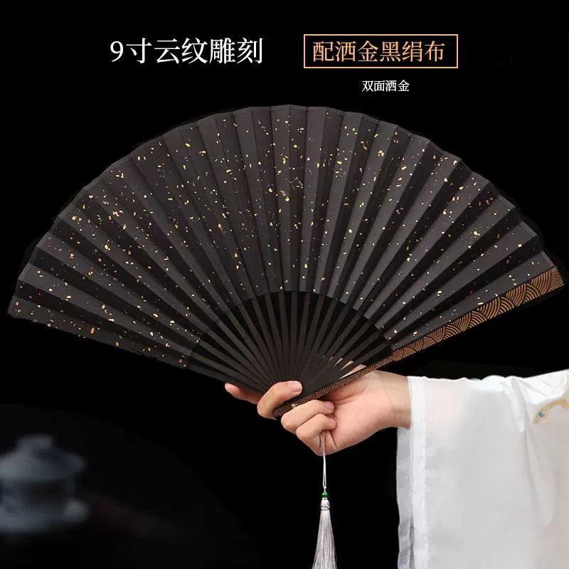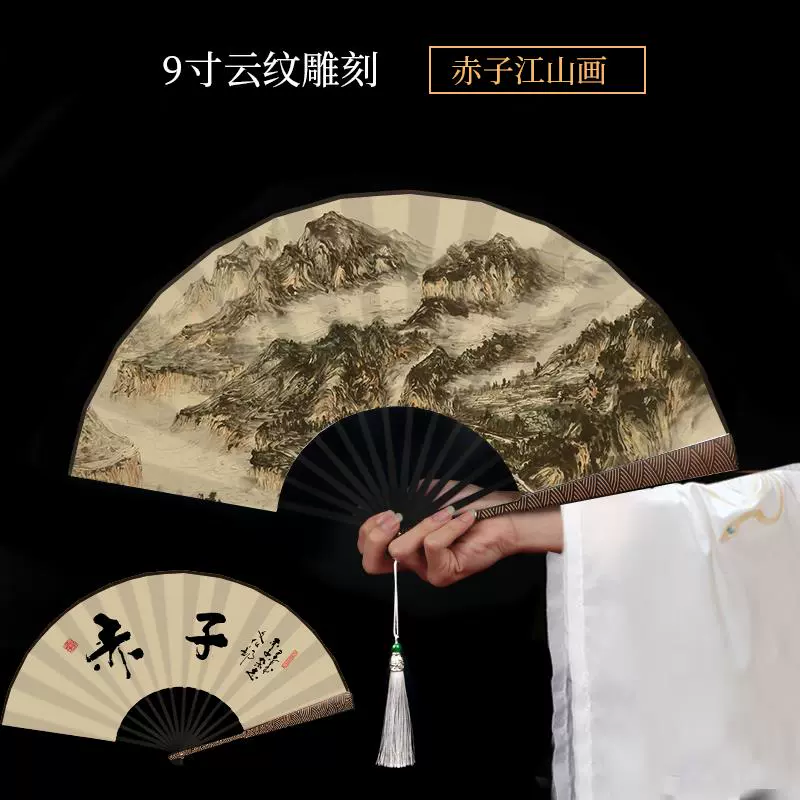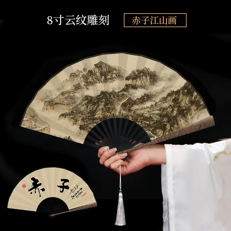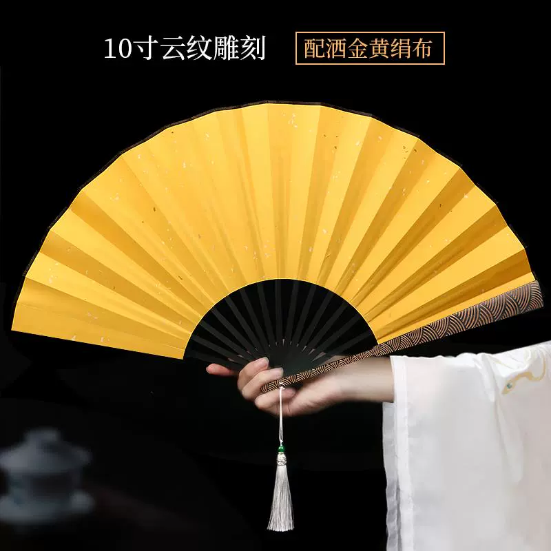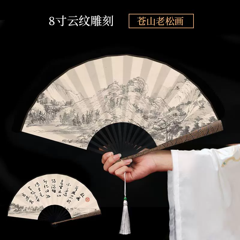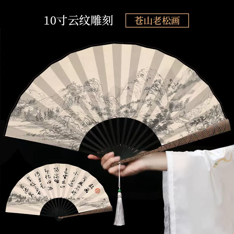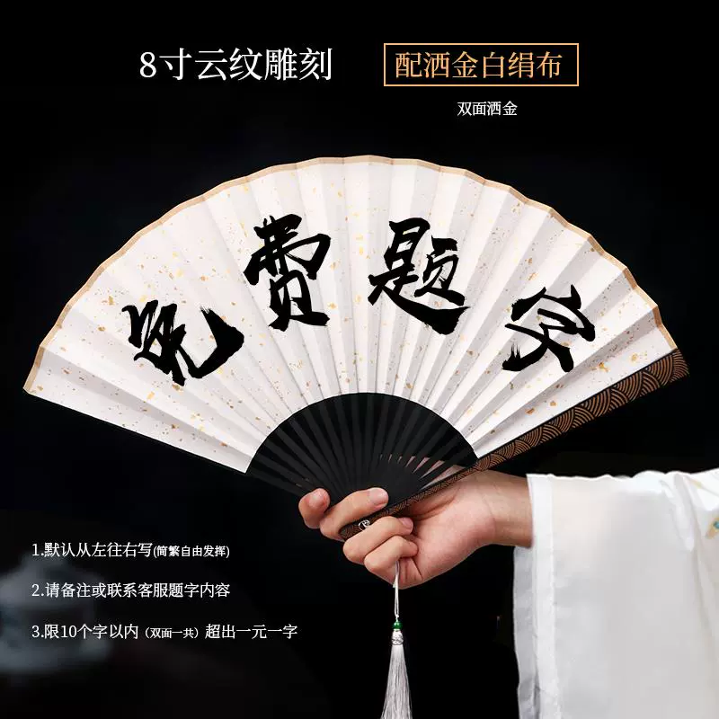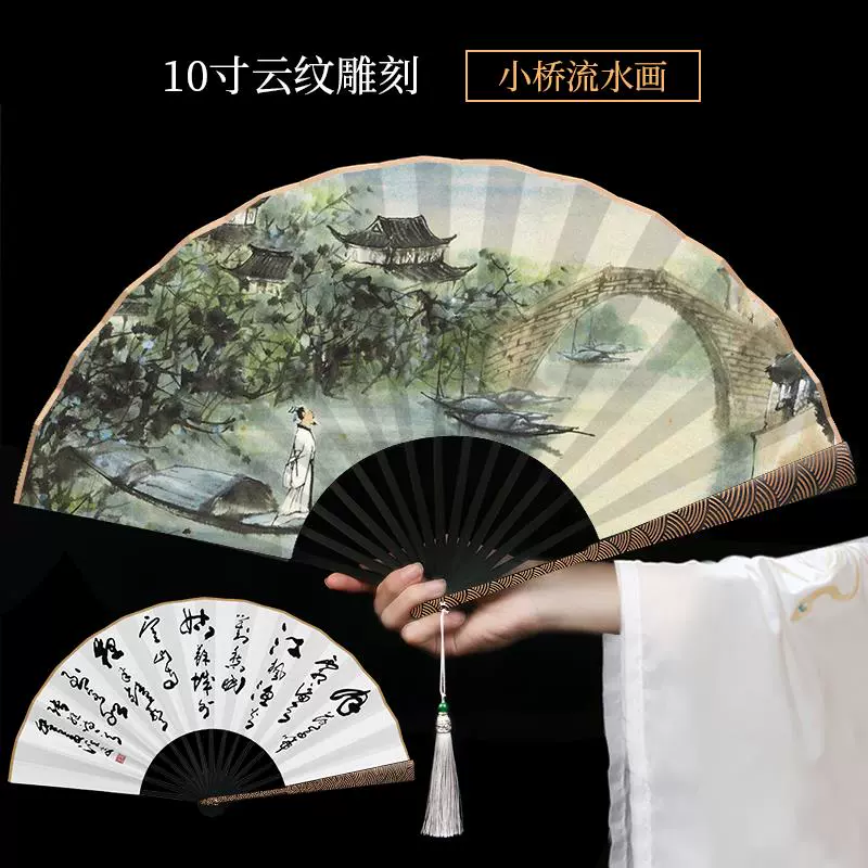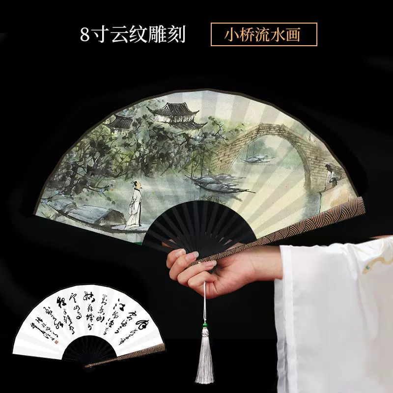 Metal frame iron fan for men and women, aluminum alloy folding fan, white with tassels, ancient style, portable for summer
