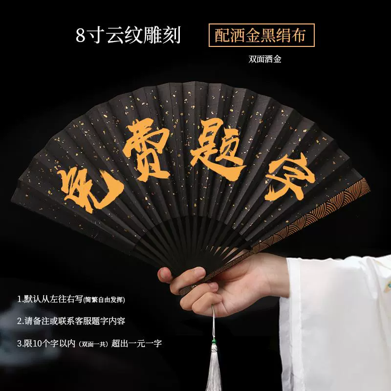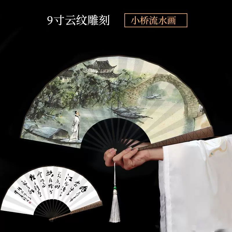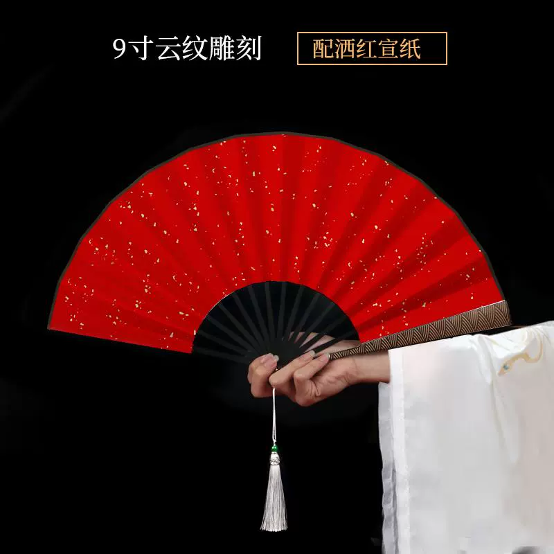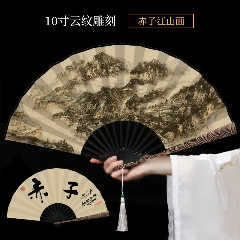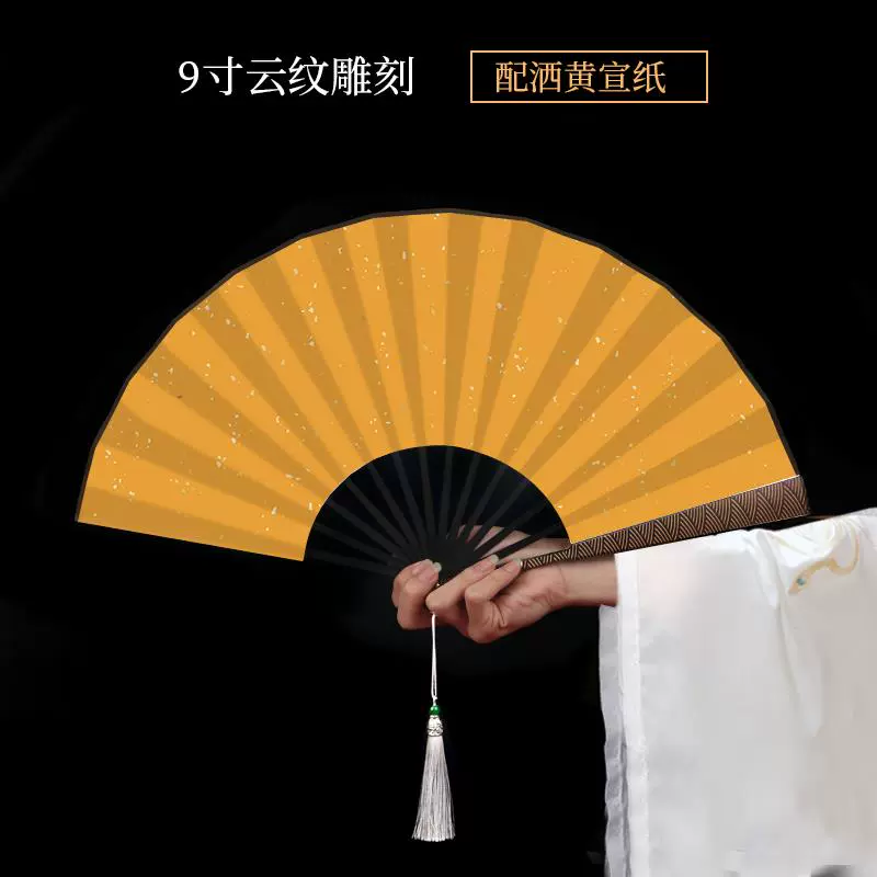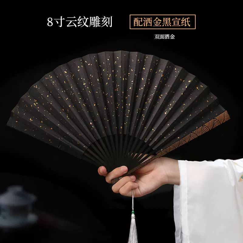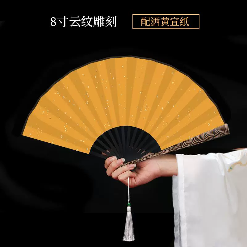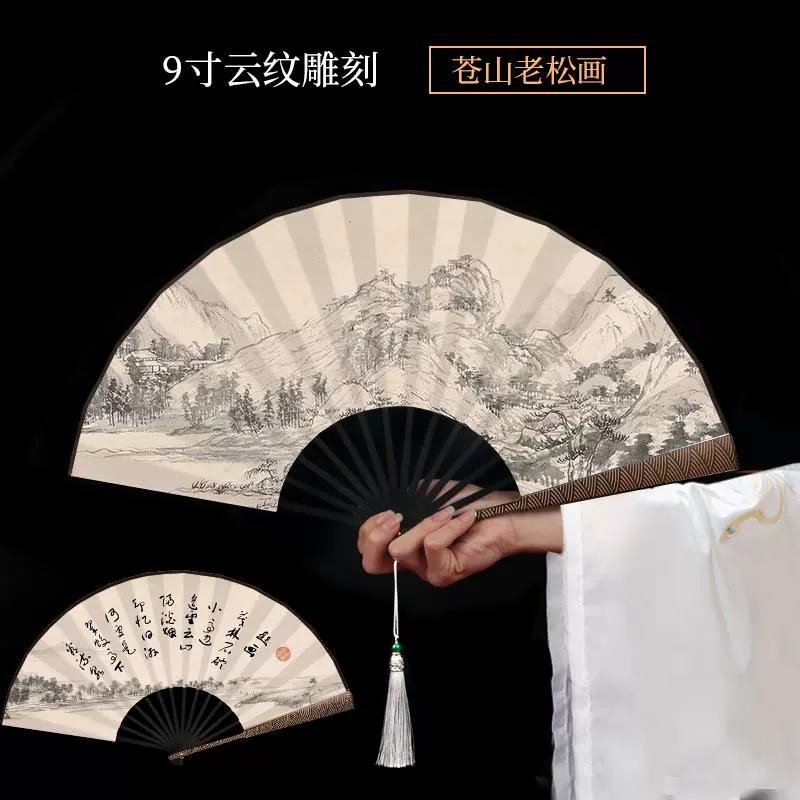 Metal frame iron fan for men and women, aluminum alloy folding fan, white with tassels, ancient style, portable for summer