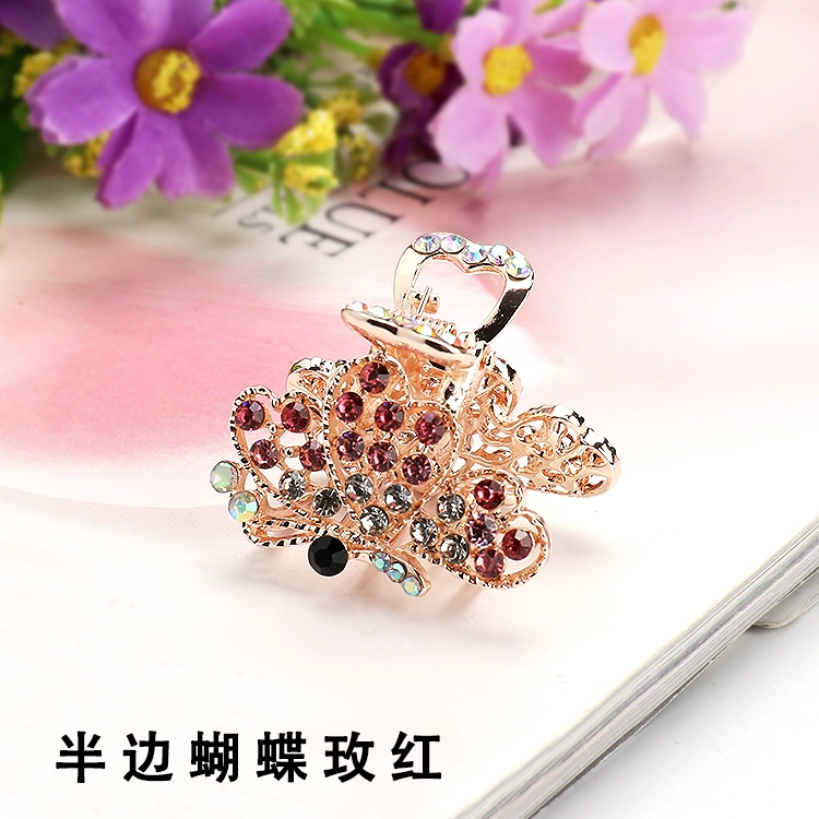 Metal hair clip rhinestone medium size hair catcher ponytail half clip adult temperament butterfly hair clip head jewelry for women