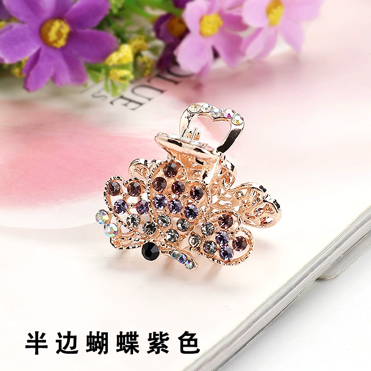 Metal gripper rhinestone medium-sized hair gripper back head ponytail half clip adult temperament butterfly hair clip headgear women