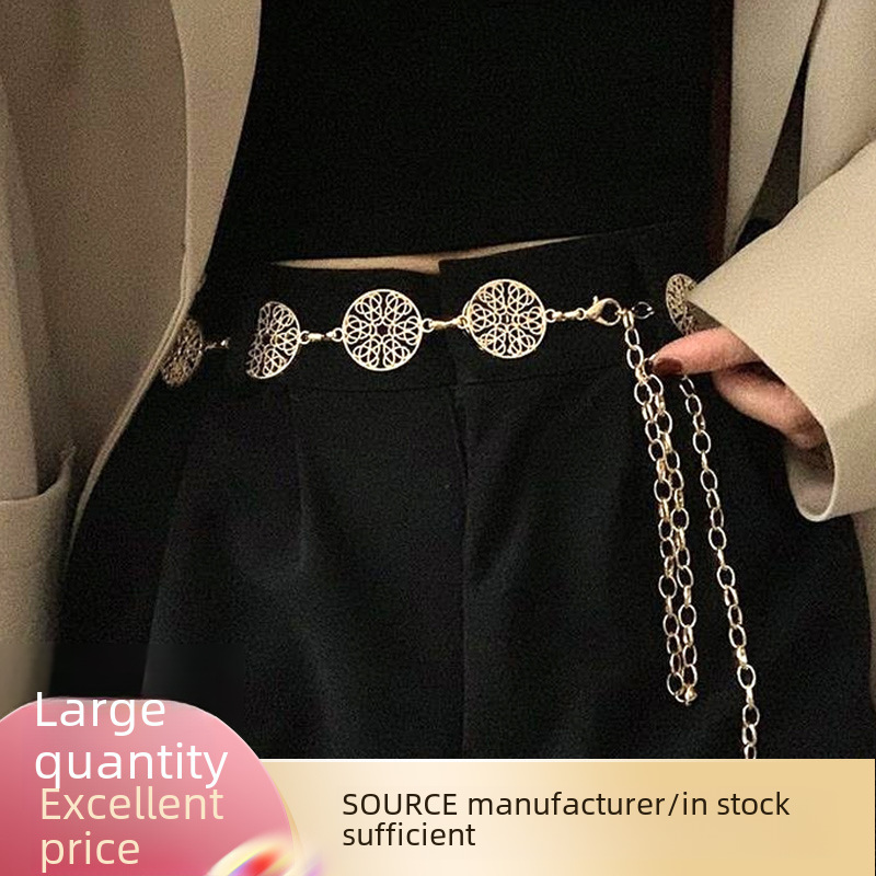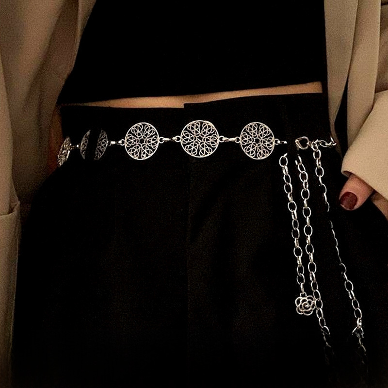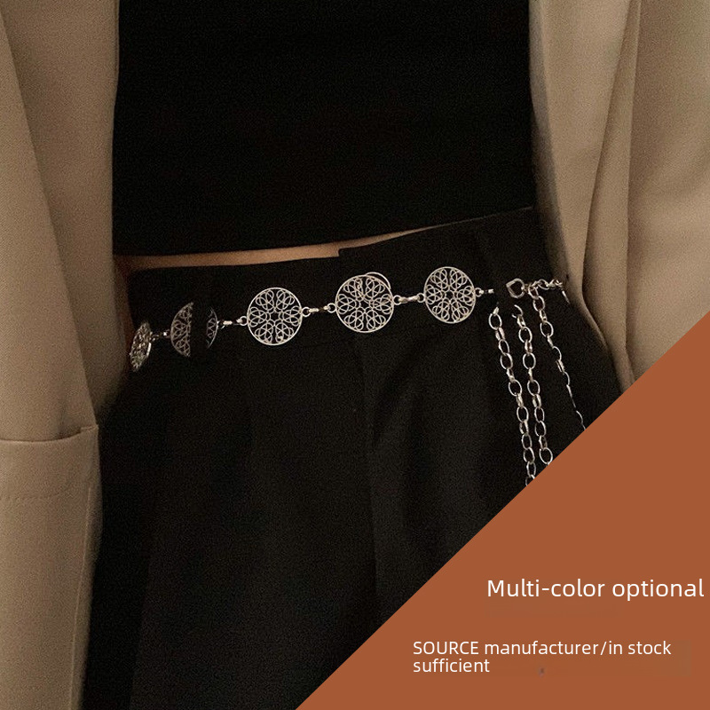 Metal Hollow Circle Waist Chain Women's All-match Belt with Suit Sweater Dress Decoration Belt jk Waist Chain Accessories