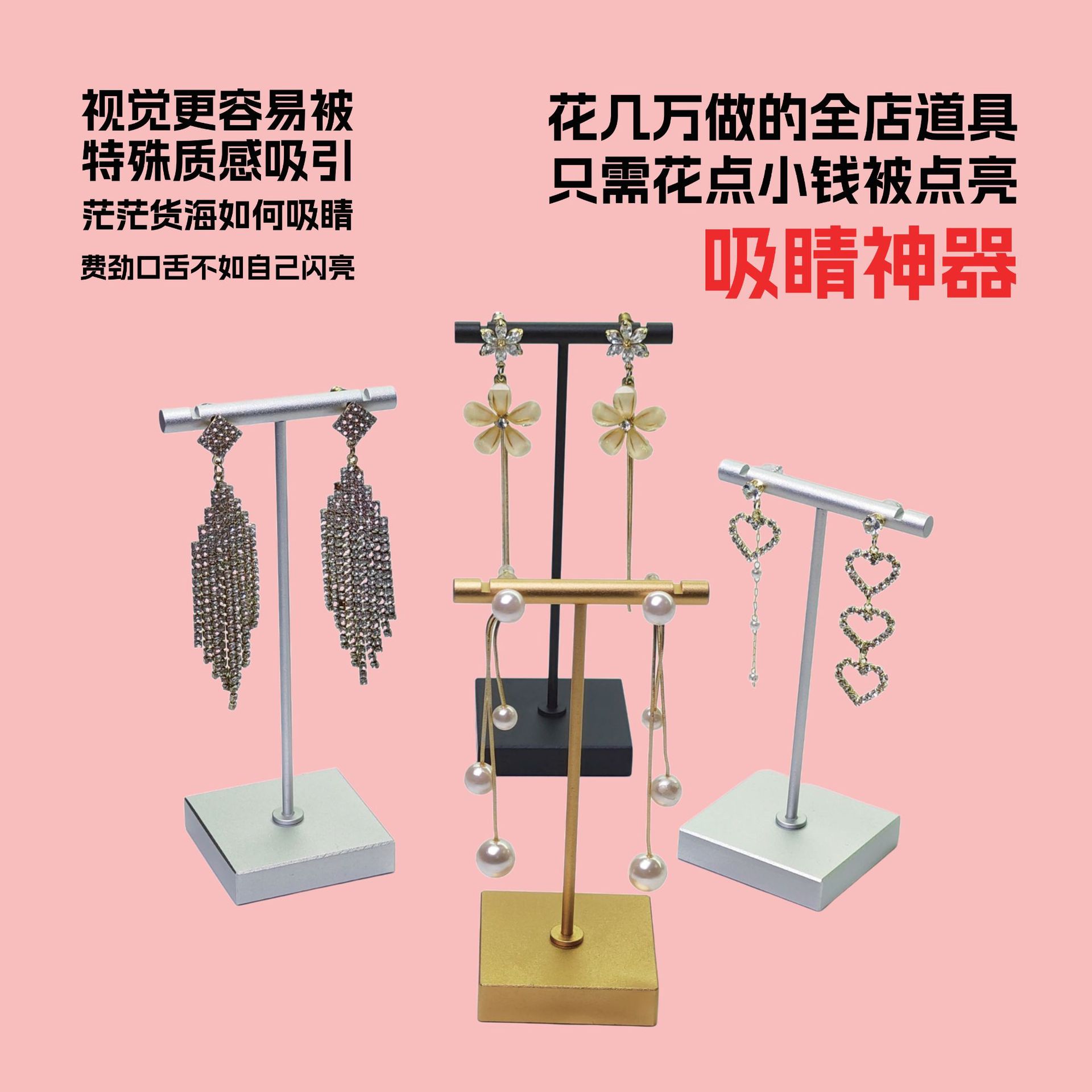 Metal jewelry display stand T-shaped rod light luxury earrings earrings hanging shelf jewelry display props customization