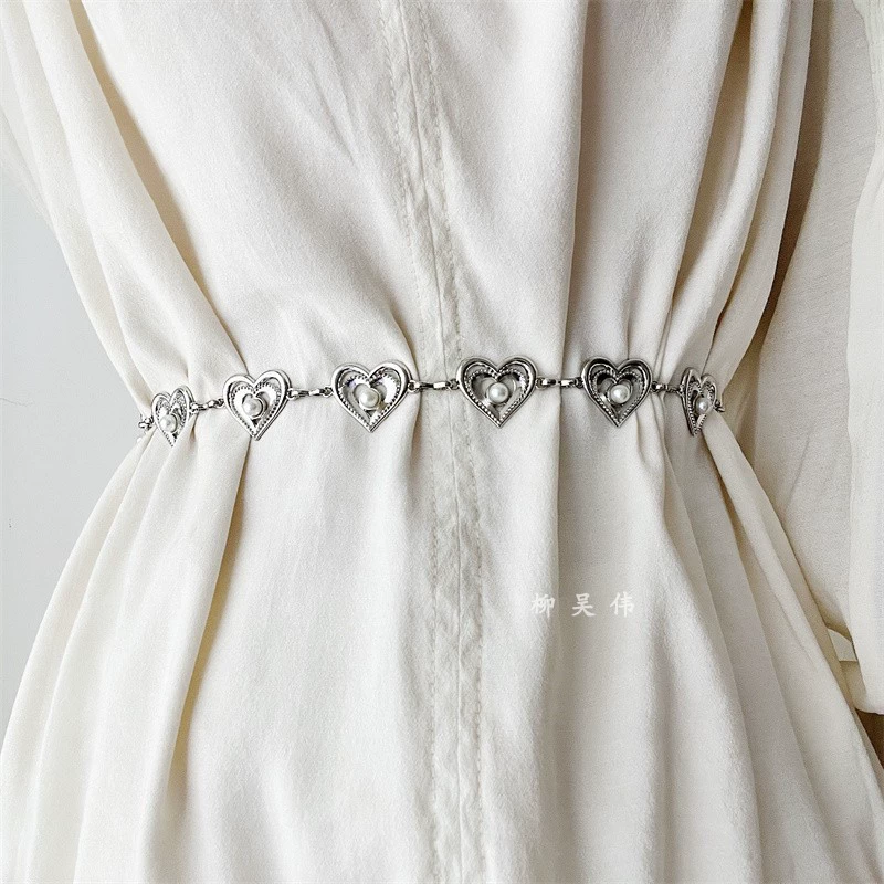 Metal love waist chain women's high-end summer dress with ins style decorative suit thin belt fashion chain