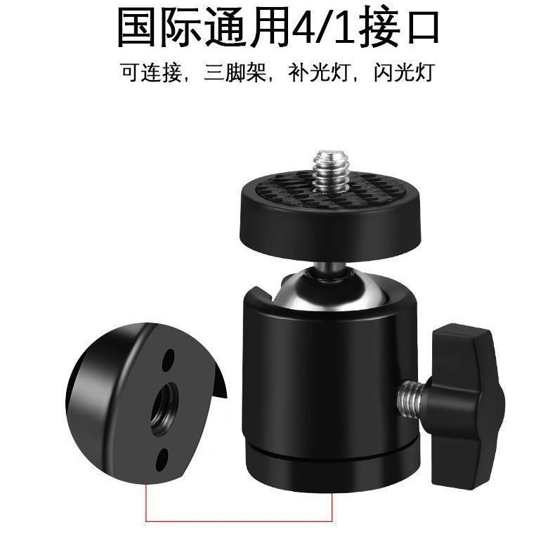 Metal PTZ tripod photography accessories Universal 1/4 screw mouth small PTZ live lamp holder rotating 360 degrees