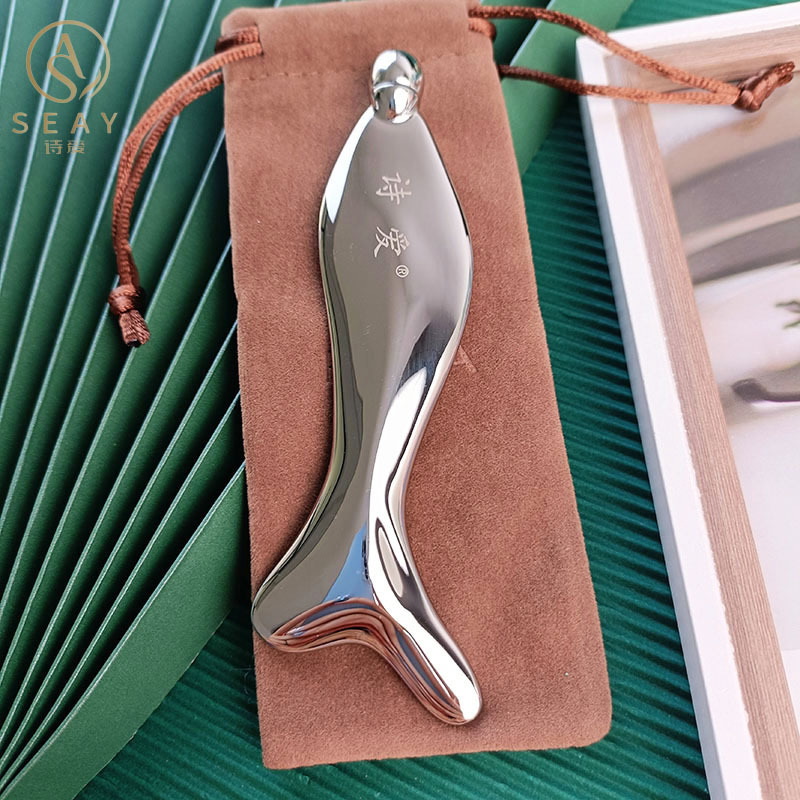 Metal scraping board facial lifting beauty scraping piece mermaid head shoulder neck Meridian facial massage board eye cream stick