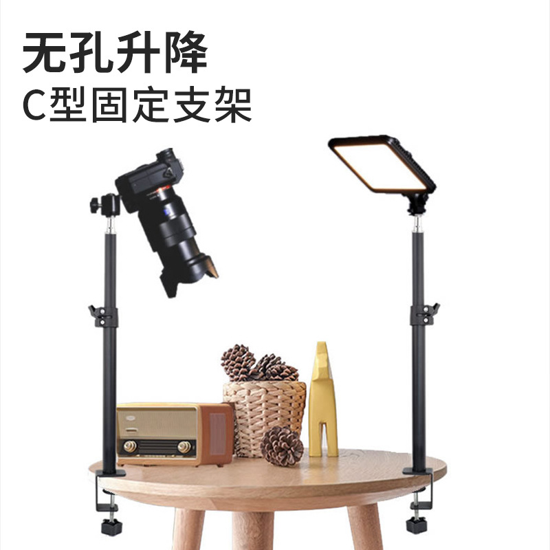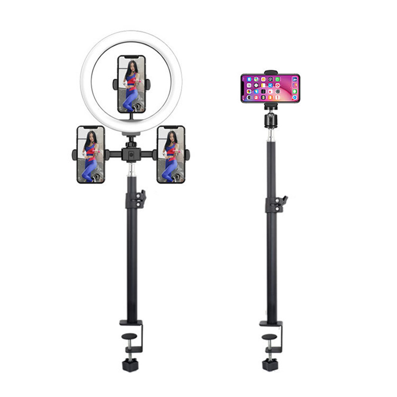 Metal telescopic rod mobile phone live support fill light pole multi-function table base fixed shooting rack