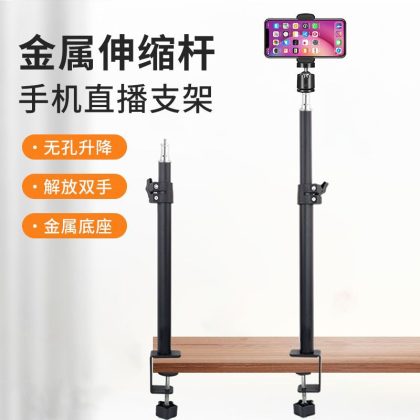 Metal telescopic rod mobile phone live support fill light pole multi-function table base fixed shooting rack